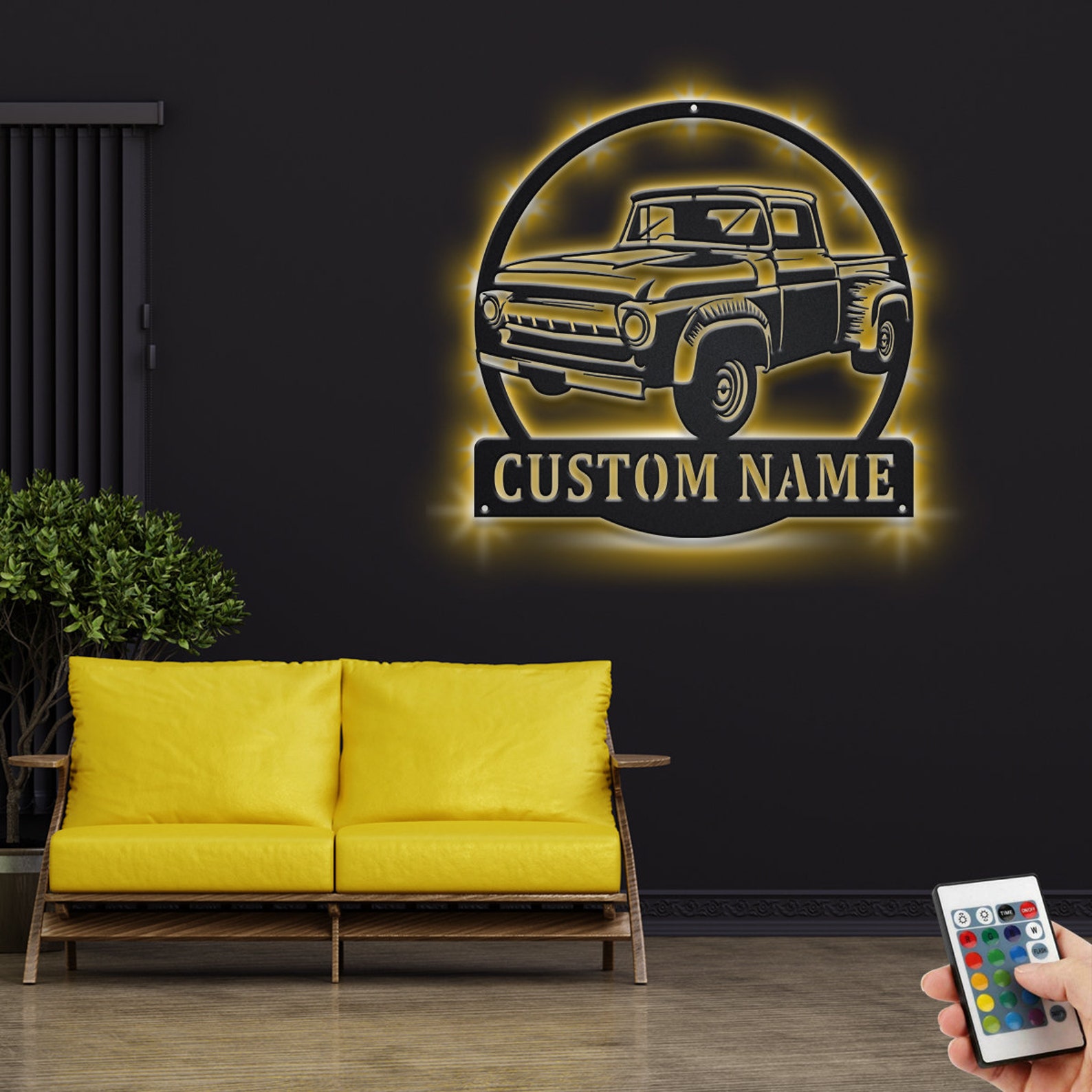 Custom Vintage Truck Metal Sign with LED – Garage Decor