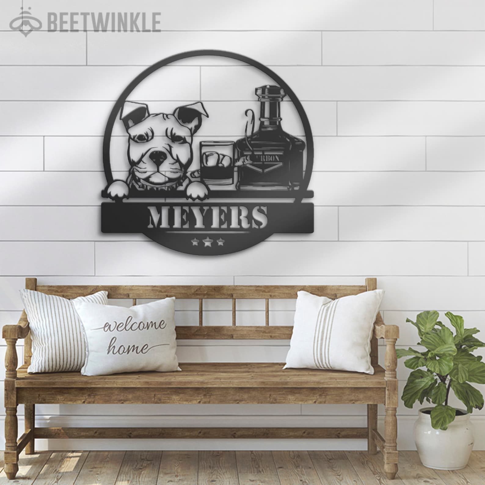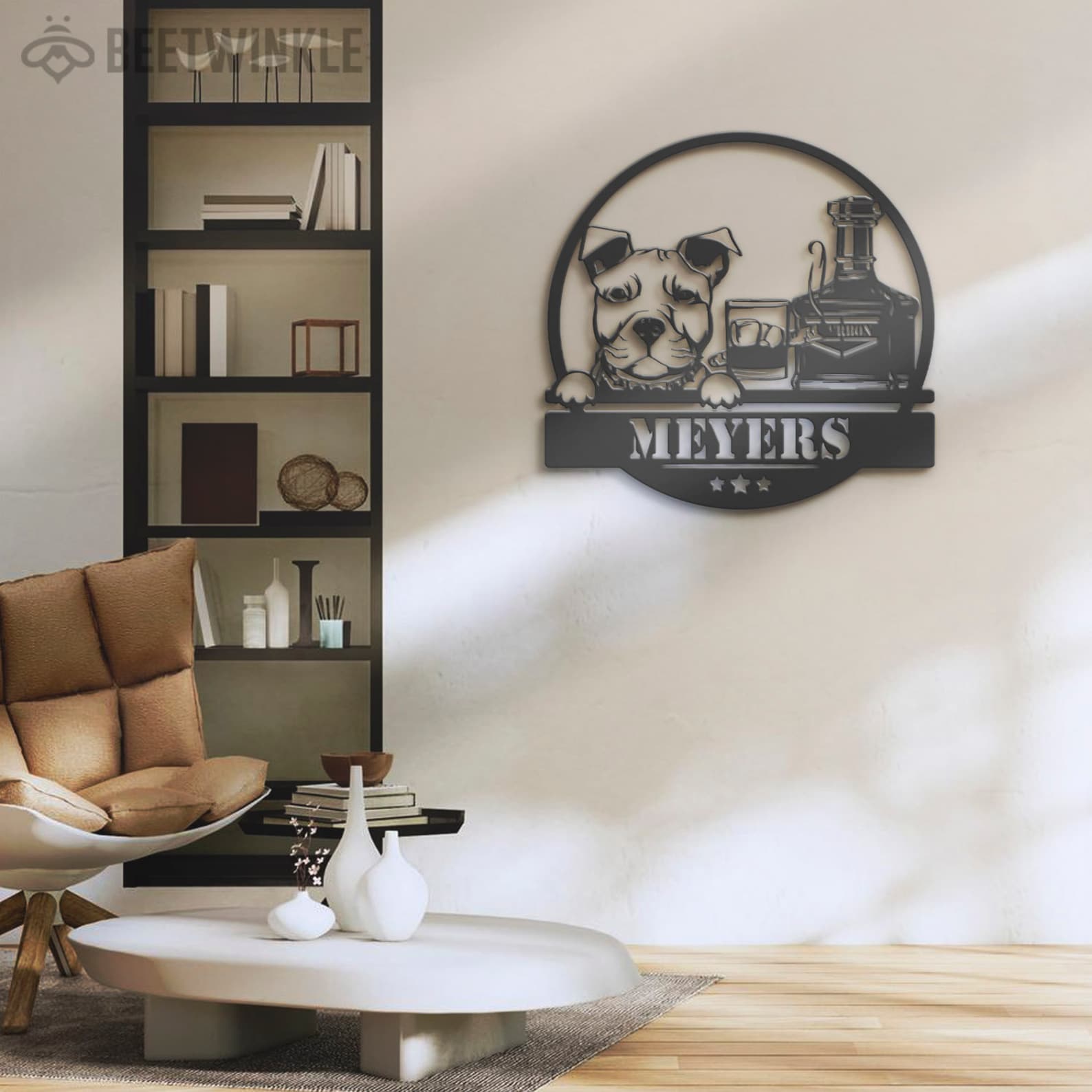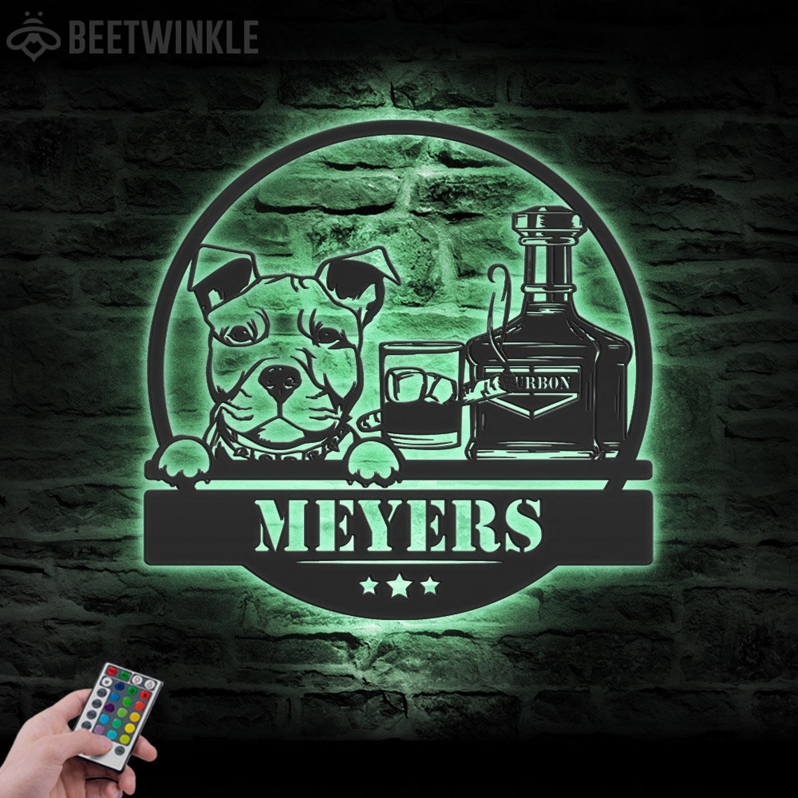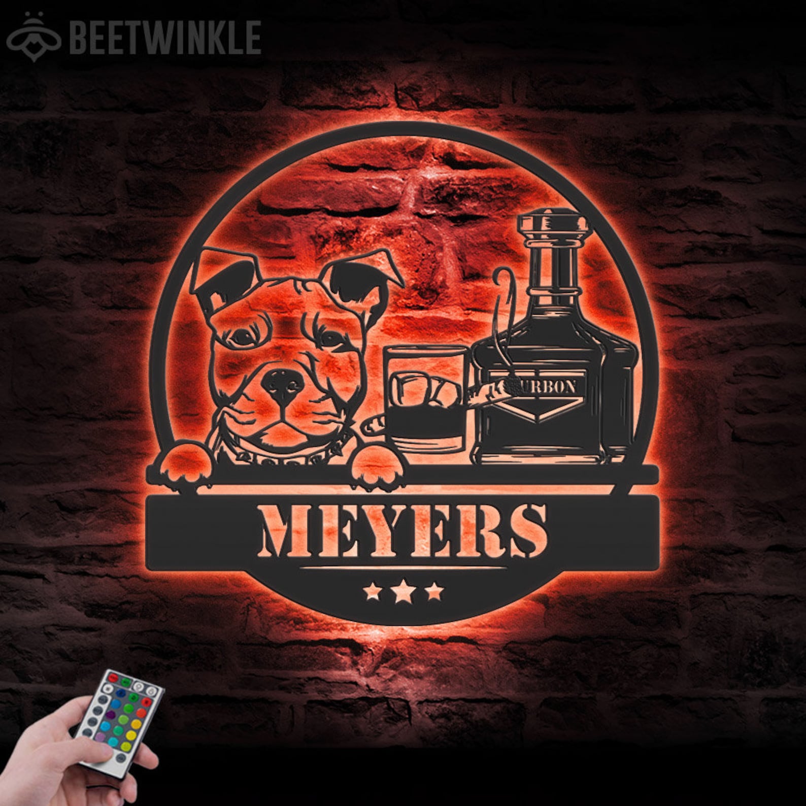 Be the first to review “Custom Whiskey Cigar and Pitbull Dog Metal Wall Art – LED Light, Personalized Sign”