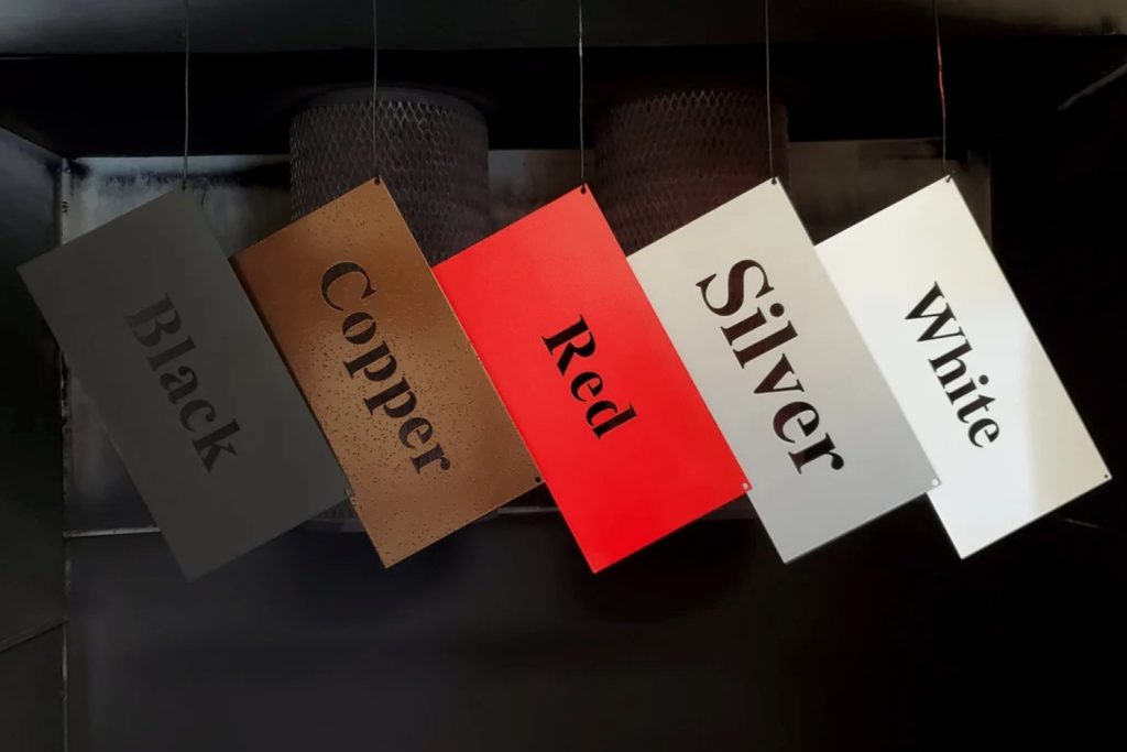 Each metal sign is cut by laser from a sheet of 18g carbon steel then powder coated with any of the color options provided to ensure itll last a long time.