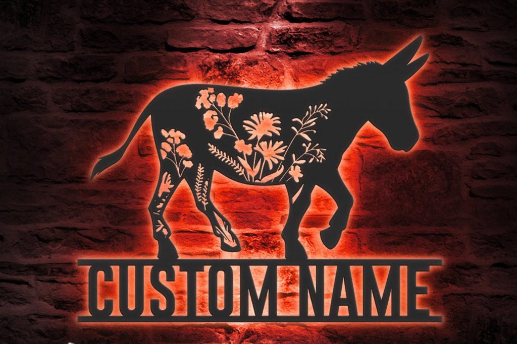 Be the first to review “Custom Wildflower Donkey LED Metal Art – Farmhouse Decor Sign”