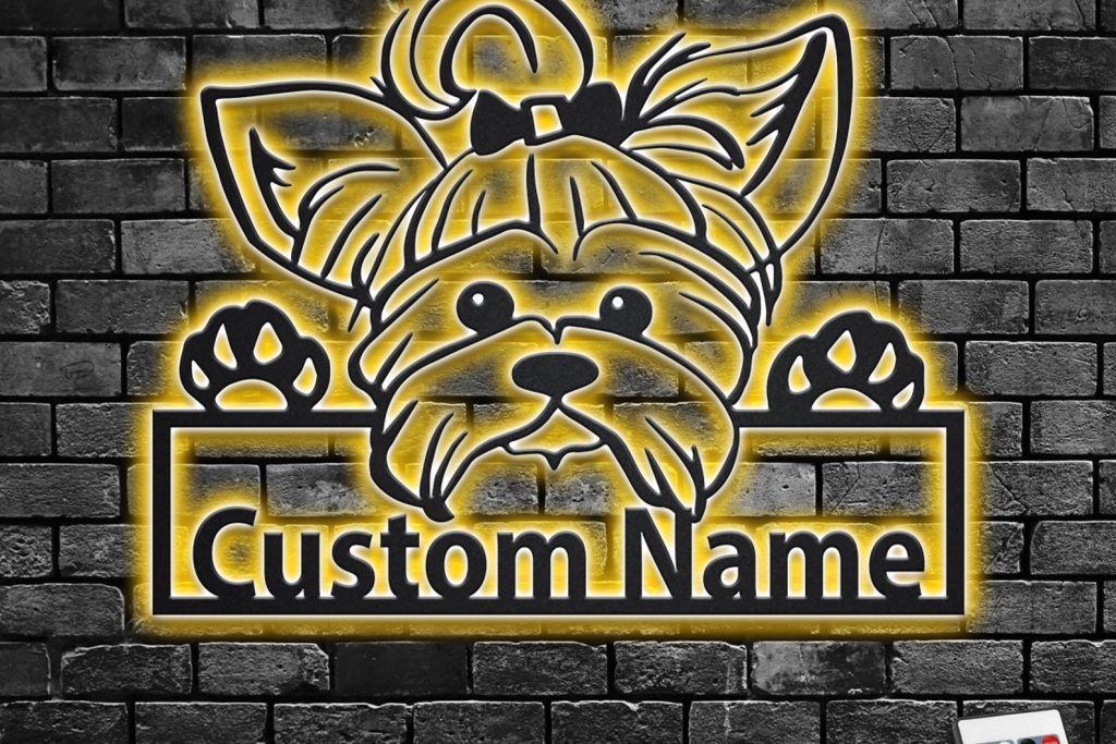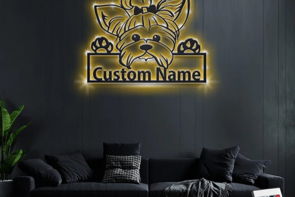 Custom Yorkie Metal Sign with LED – Room Decoration