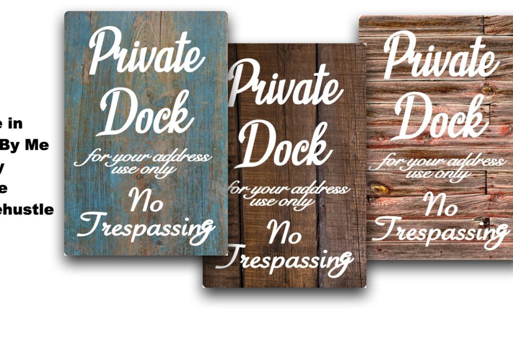 Private Dock No Trespassing – customize and choose backgrounds – Barn wood, Grey Wood, White Crackle, teal, blue etc – wood style backgrounds – Metal Sign Door Plaque – (Note not actual wood so smooth and safe to the touch)