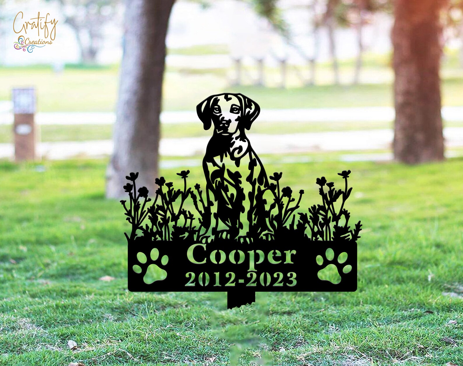 Custom garden items to commemorate your family9;s beloved dog. A memorial plaque is a great way to remember your dog. You can personalize the plaque with your dog9;s name, birthdate, and deathdate.