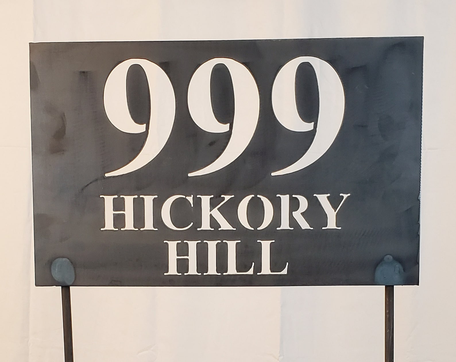 It is powder coated in your choice of 2 colors (black or copper) in 4 different sizes (18, 24, 30 & 36 inches). The size is based on the maximum height or width of the sign depending on physical orientation.