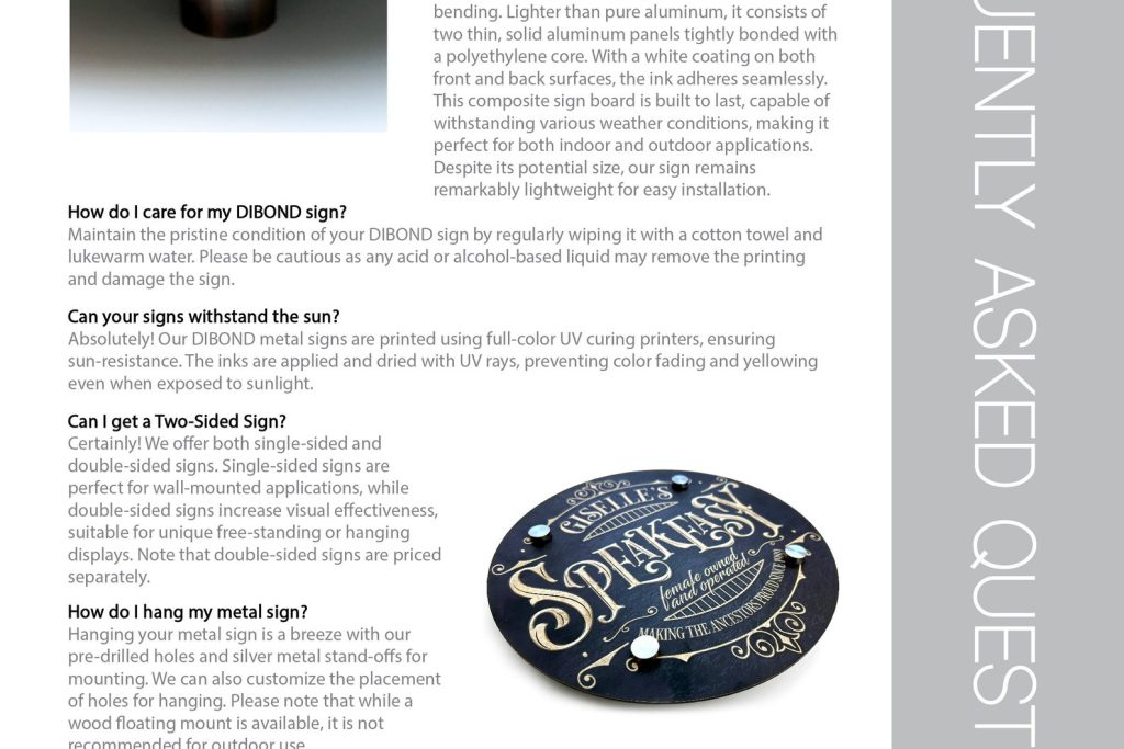 4-6 Metal Stand-offs incl for mounting, 8 for largest signs
