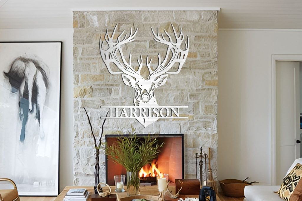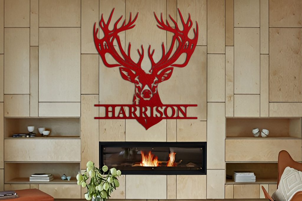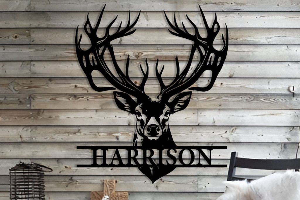 Deer Head Sign,Deer Antler Decor,Deer Hunter Gift,Deer Monogram Camp Sign,Christmas Gift For Him,Deer Name Metal Sign,Fathers Day Gift,Gift