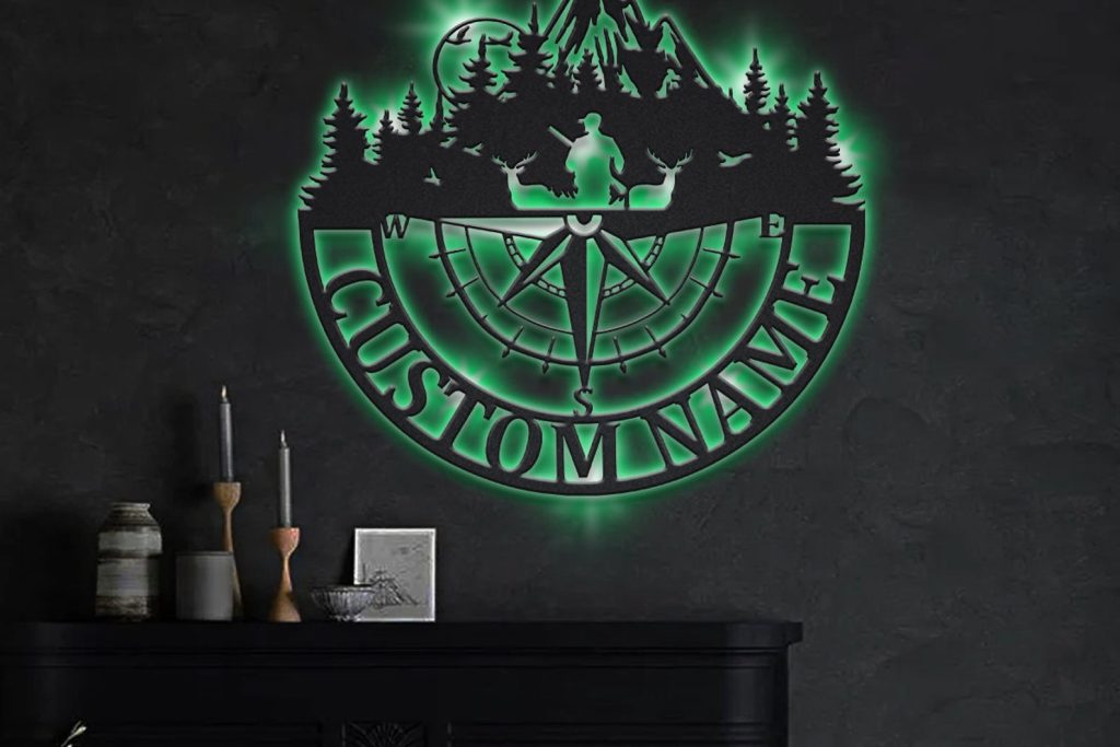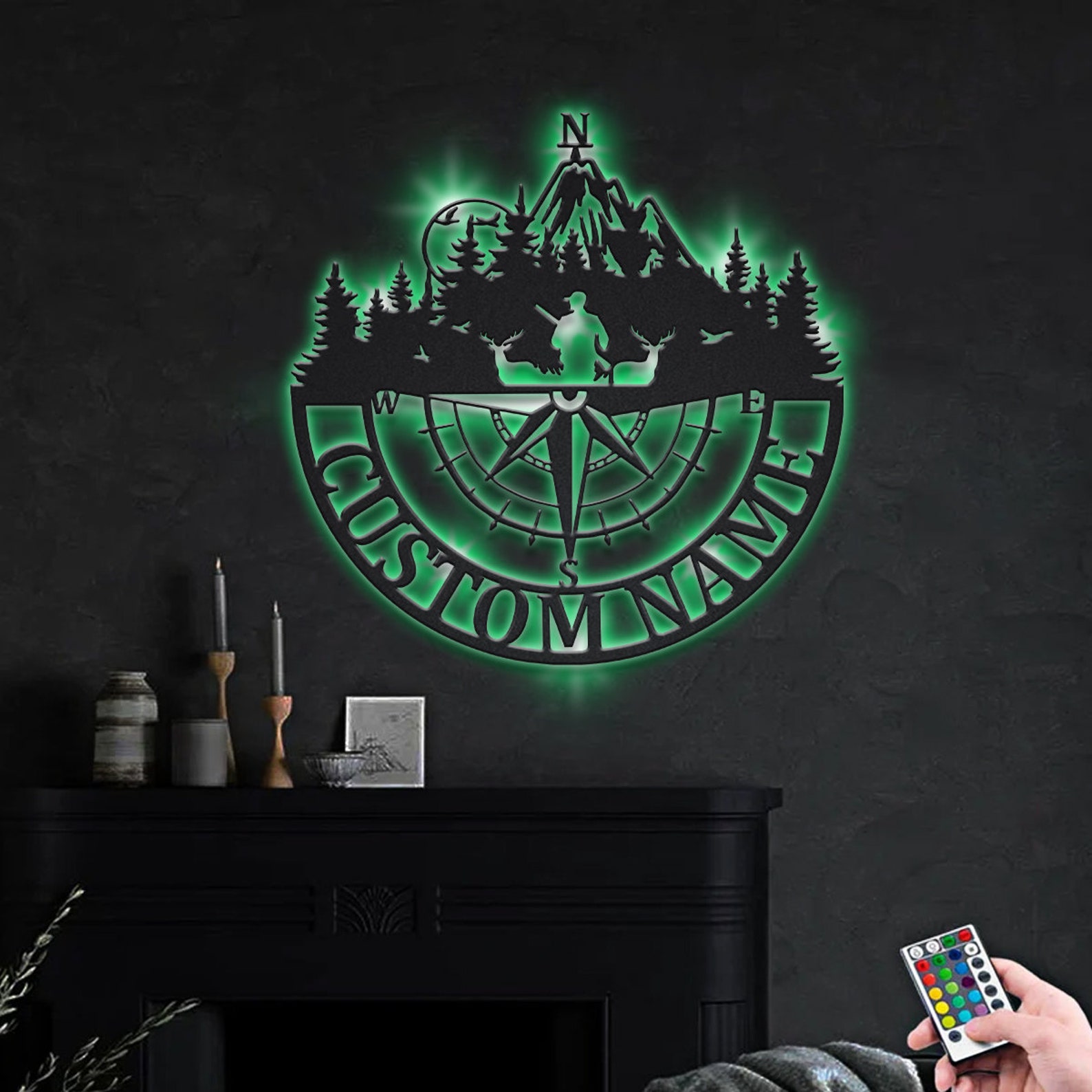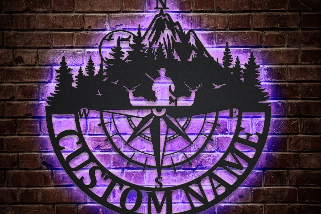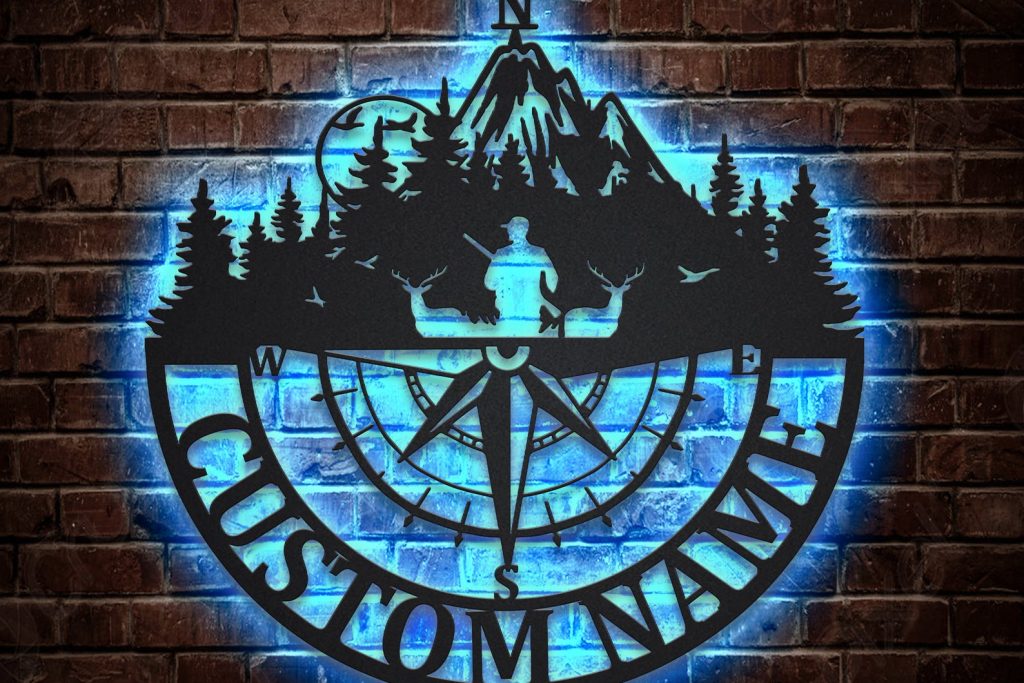 Be the first to review “Deer Hunter Compass Metal Sign with LED – Cabin Decor”