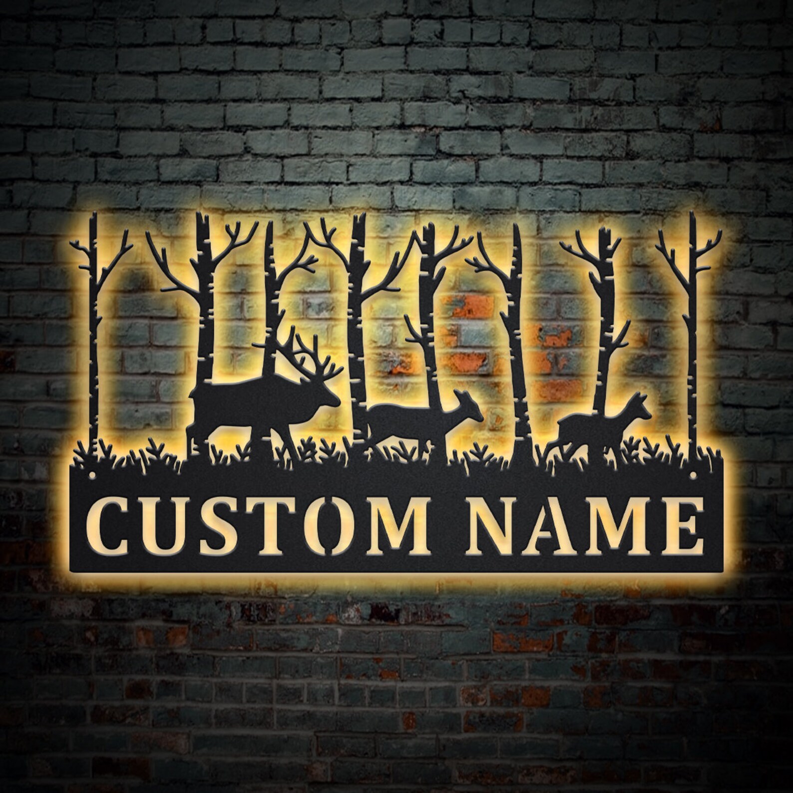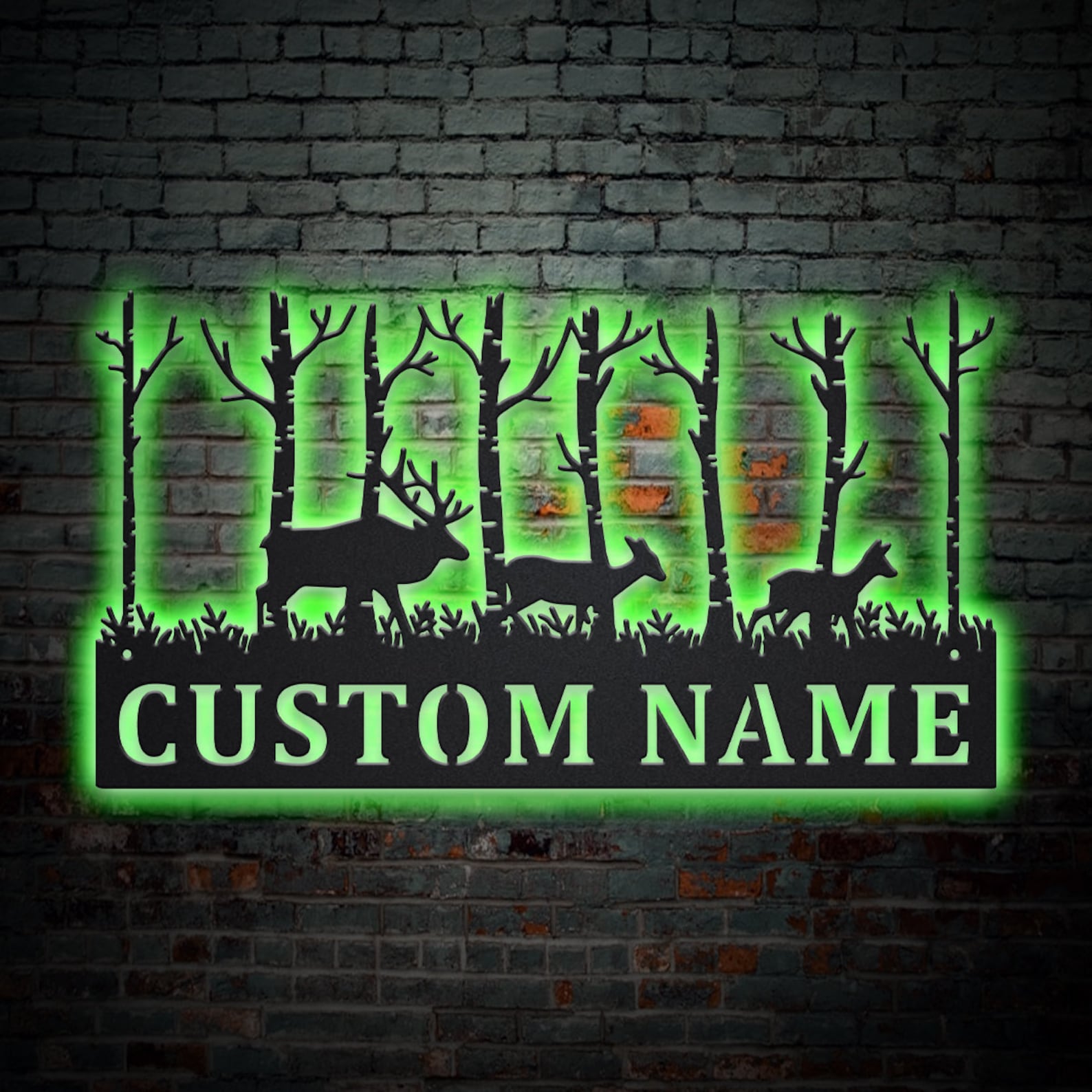 Revamp your hunting cabin with our Custom Deer Hunting Monogram Metal Sign that comes with LED lights. It9;s a perfect addition to your collection of hunting memorabilia. Made with high-quality metal, this sign features a stylish deer design that will surely elevate the aesthetics of your space.