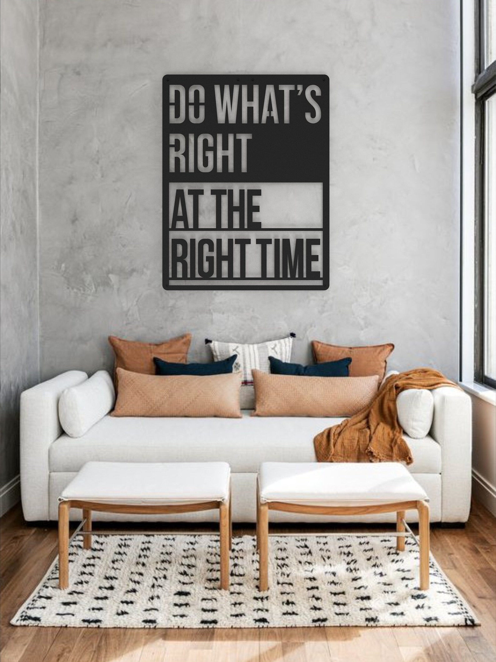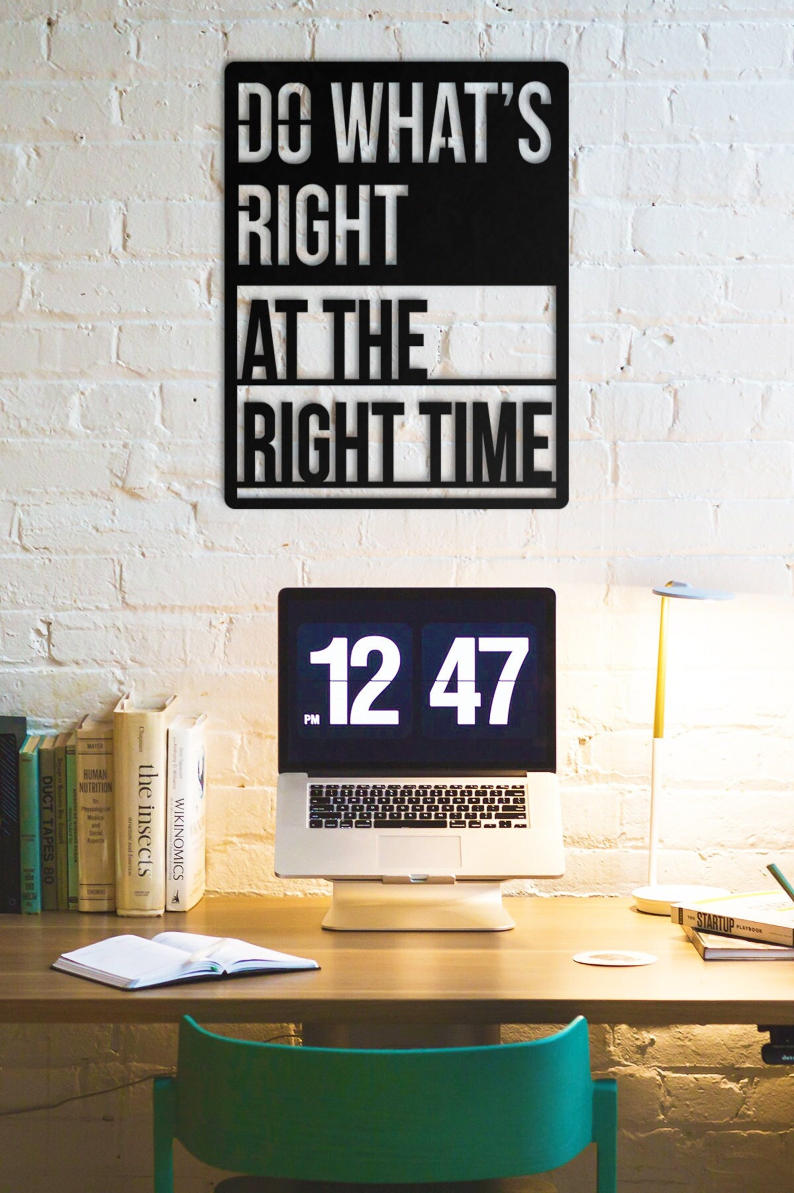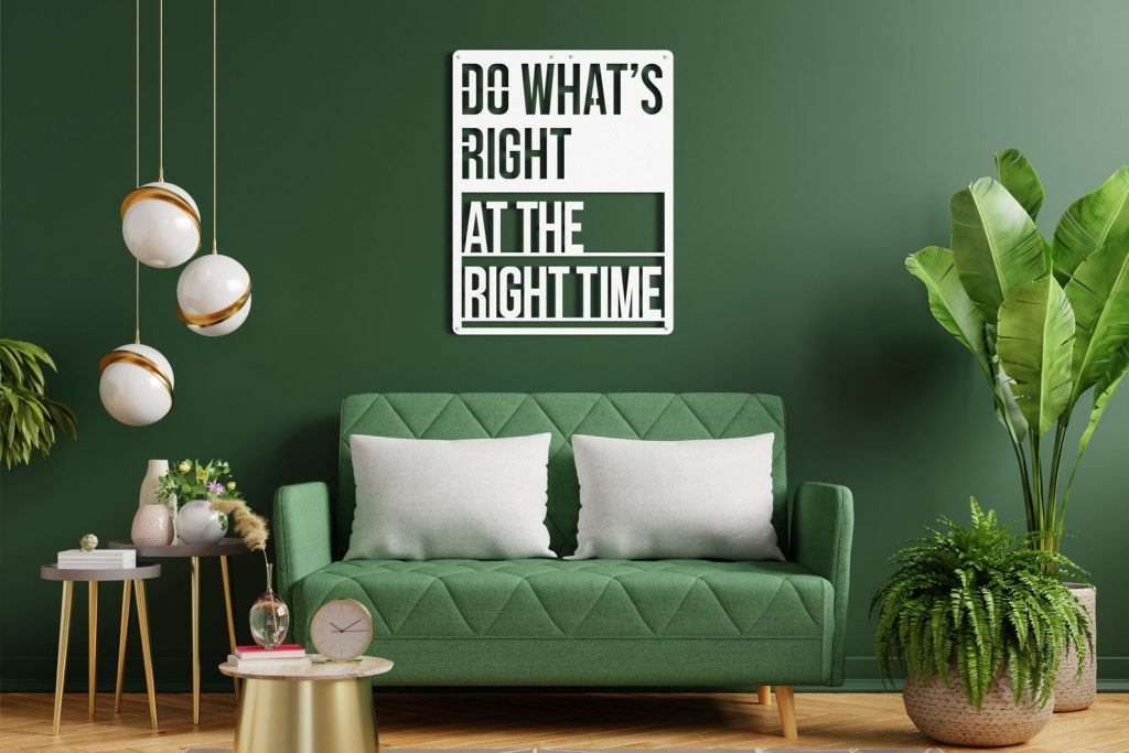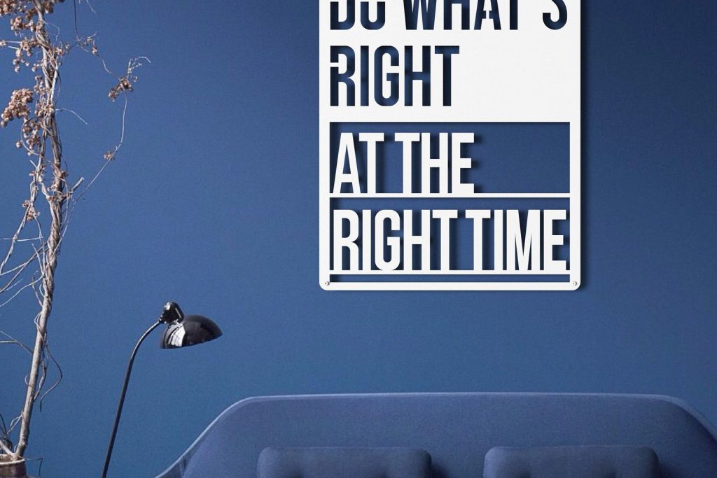 Do Whats Right At The Right Time Metal Wall Decor has different size options. It will add a playful and luxury look to your home and can be a perfect gift for your friends or family members. Modern Wall Art can be used as Bedroom Wall Decor, Living Room Decor, etc. according to your preferences. It is produced using mild steel (ST37). Designs are produced by laser cutting. It is painted with electrostatic paint. This method ensures that the product is of higher quality and durability.