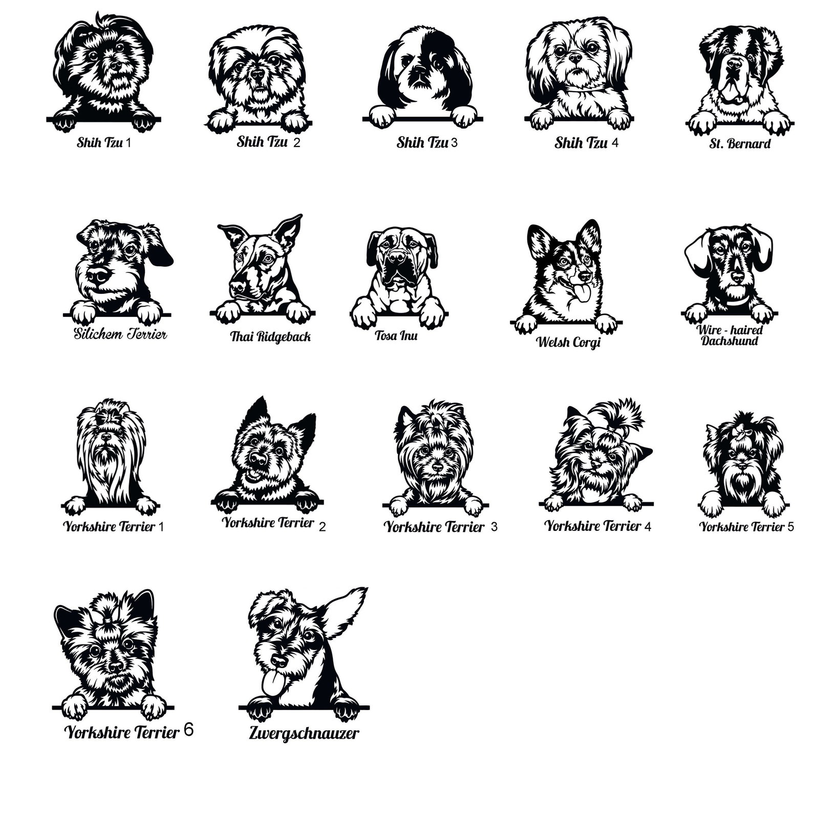 Personalize this custom dog metal sign with Welcome, or your dog9;s name. See pictures for options on dog breeds. Choose from 100 designs on 4 pages.