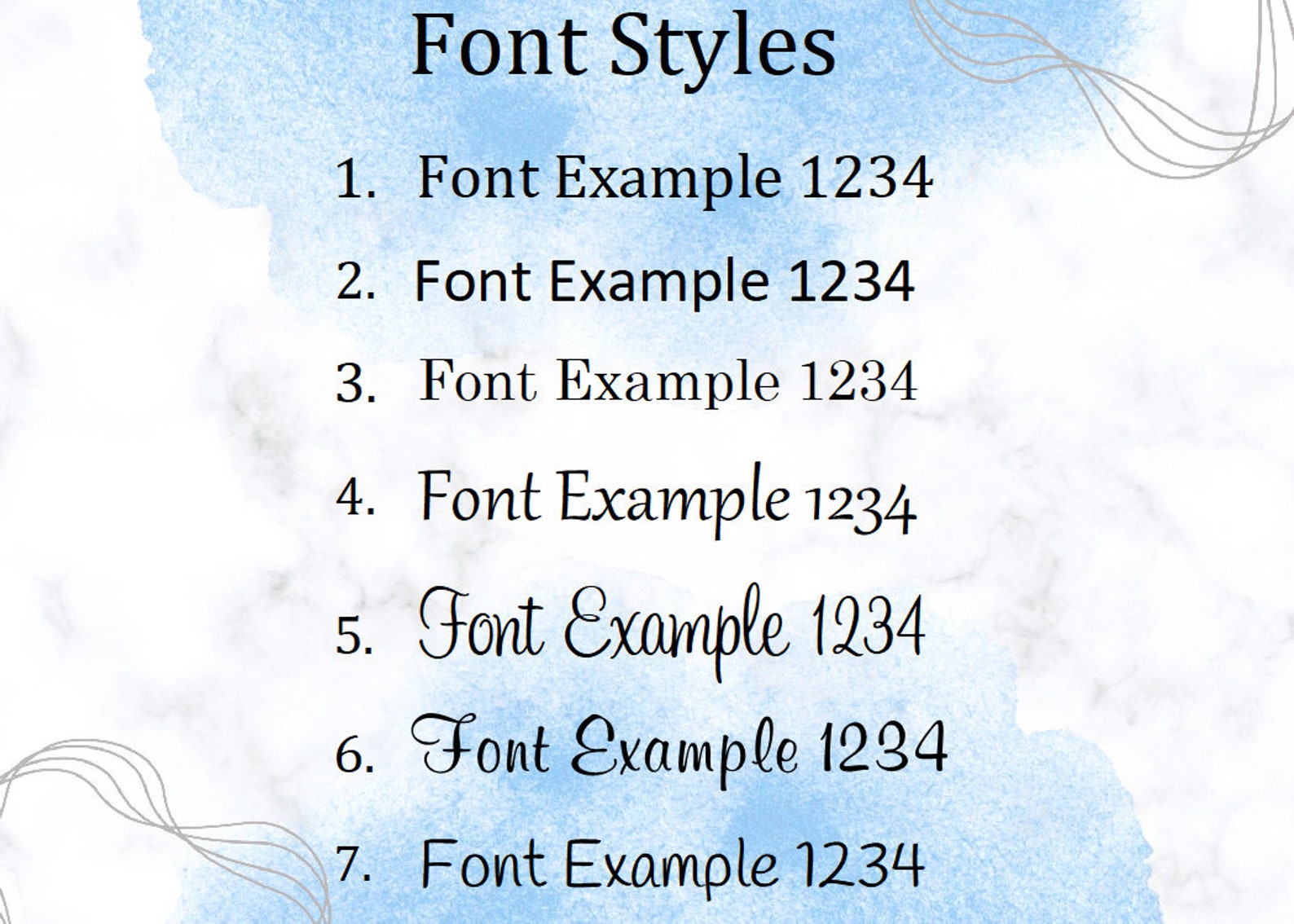 Example is shown in font style 7- font styles are on 3rd picture page.