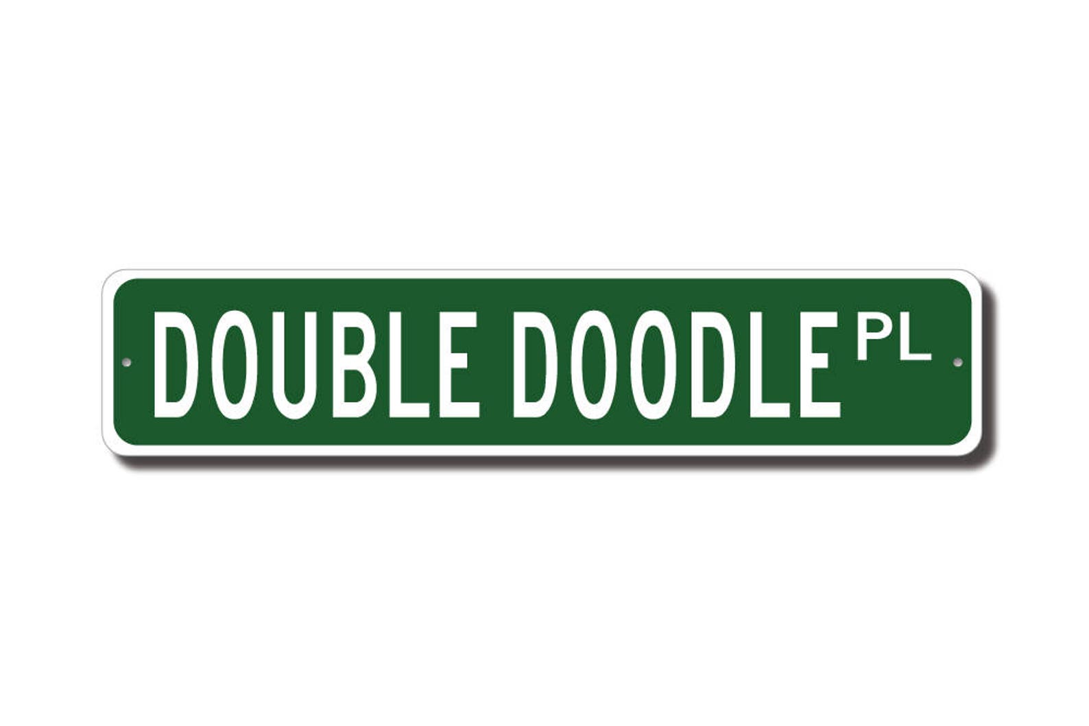 Double Doodle lovers check out this awesome street sign! This will make the perfect piece for any Double Doodle lover or Double Doodle cave. Made of premium aluminum it will stand the test of time. This sign will look great in any room, garage, barn or office! Get this sign for your favorite friend that loves a Double Doodle!