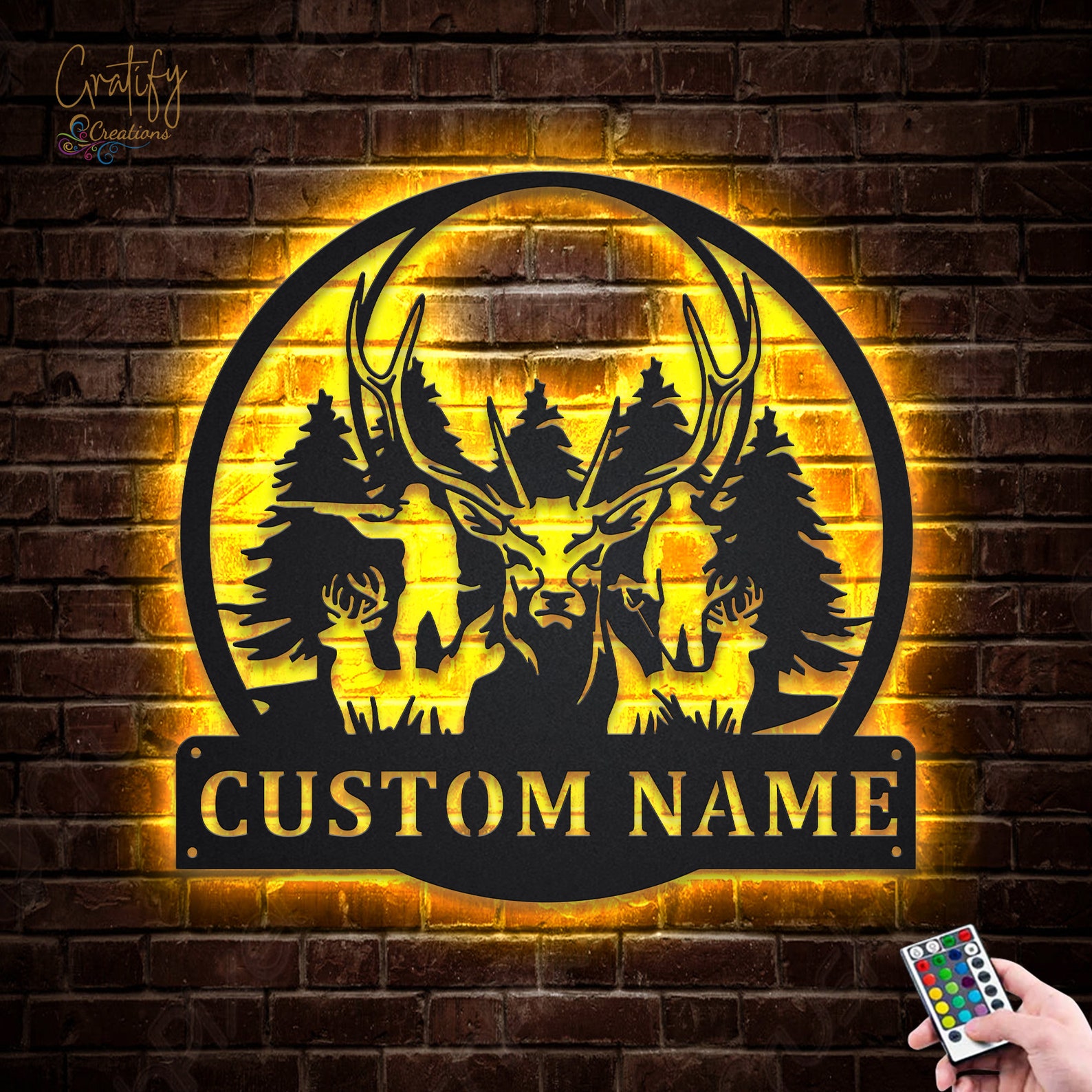 Revamp your hunting cabin with our Custom Deer Hunting Monogram Metal Sign that comes with LED lights. It9;s a perfect addition to your collection of hunting memorabilia. Made with high-quality metal, this sign features a stylish deer design that will surely elevate the aesthetics of your space.