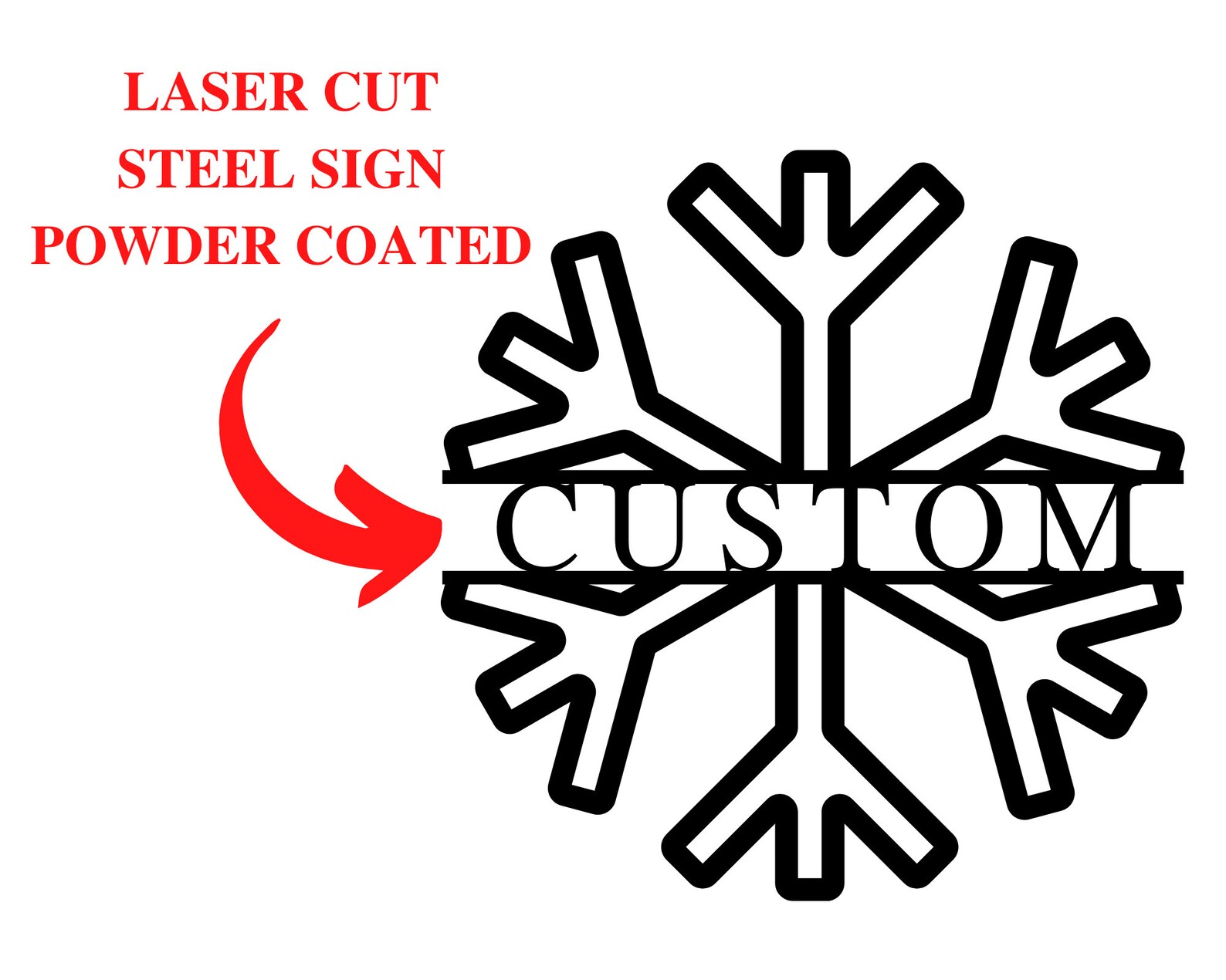 We provide laser cut powder coated signs, we leave the options of hanging the sign with hooks, screws, or magnets up to you!