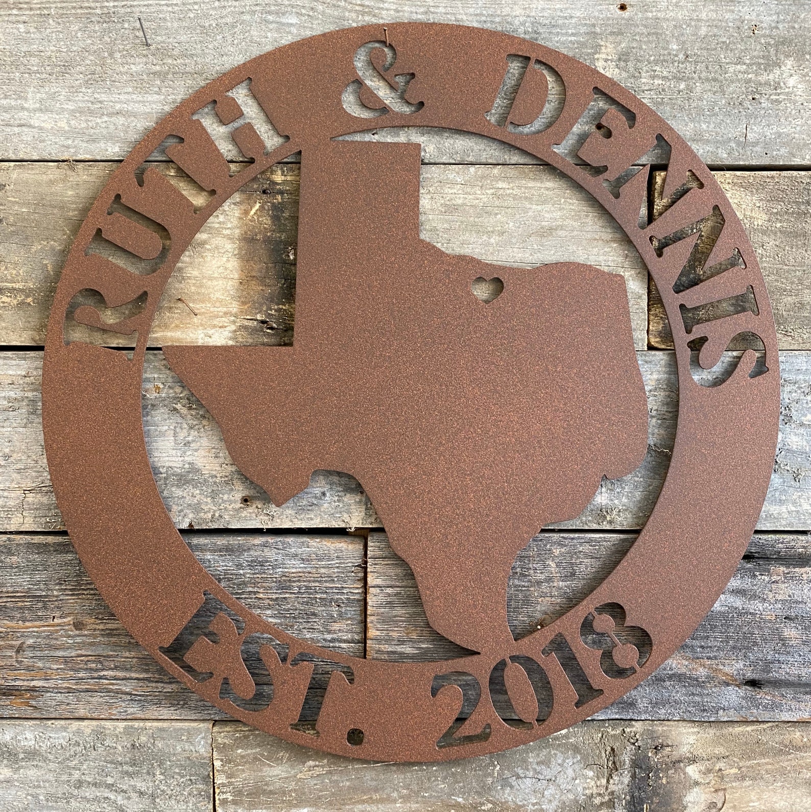 Monogram sign made out of 16 gauge steel then powder coated in the color of your choice.