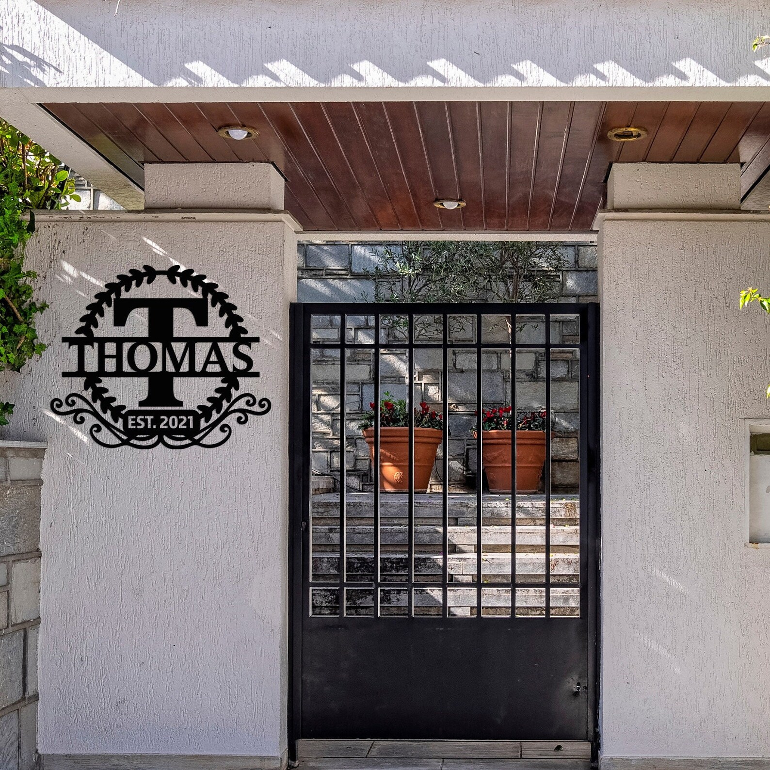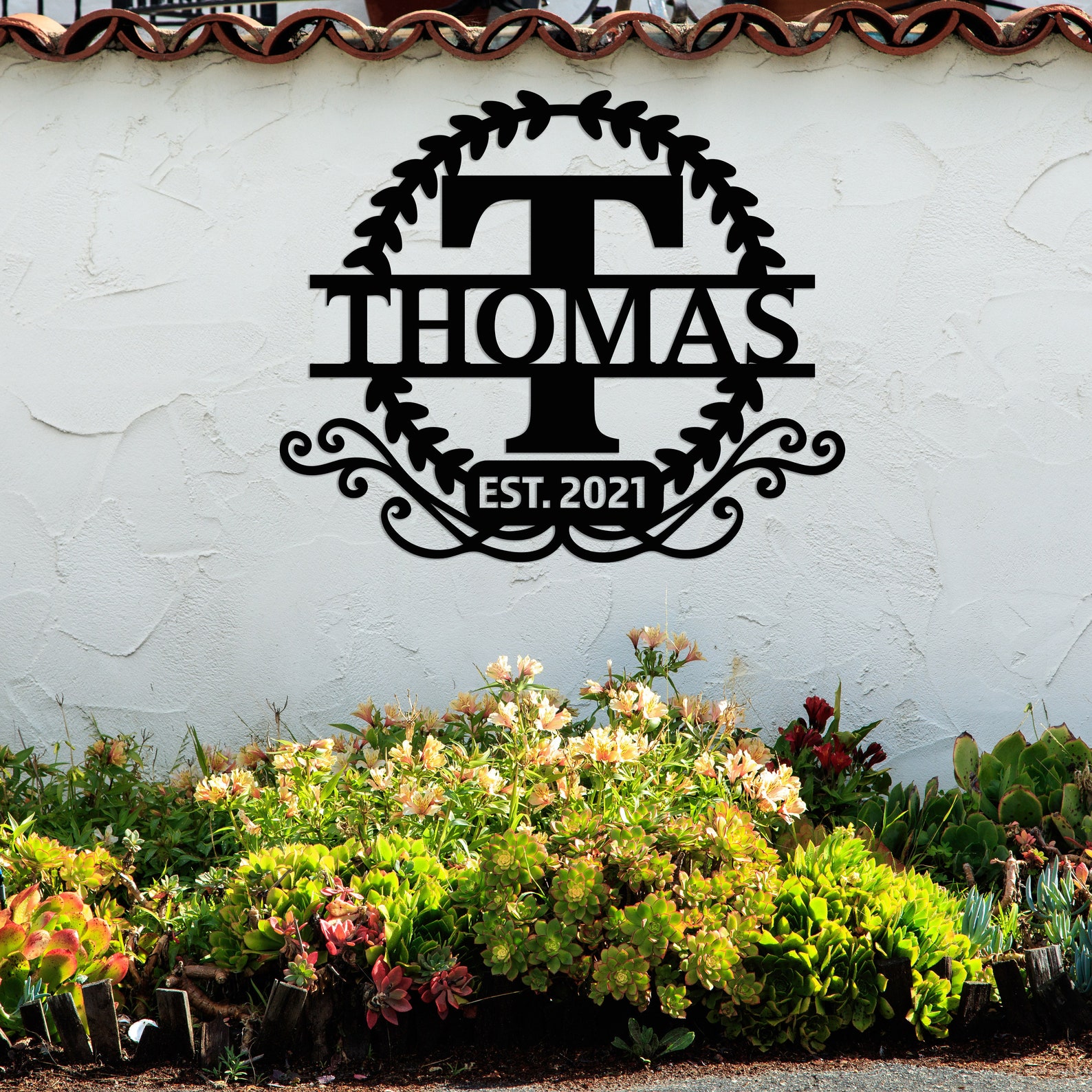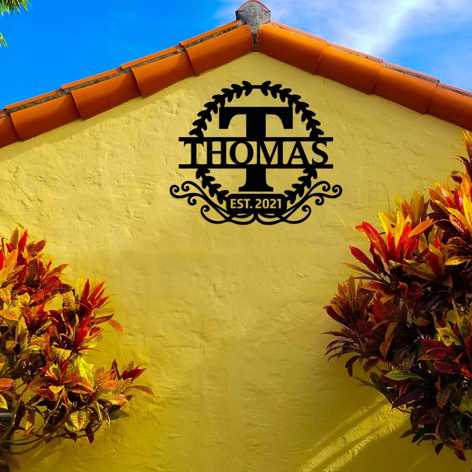 It9;s a great way to show off your family name in an elegant way! You can customize it with any family name, business name, house number, full address or any text. This sign is made from metal and coated with high-quality electrostatic powder coating. So it will last for many years without rusting or fading in the sun. It9;s also easy to hanging to wall.