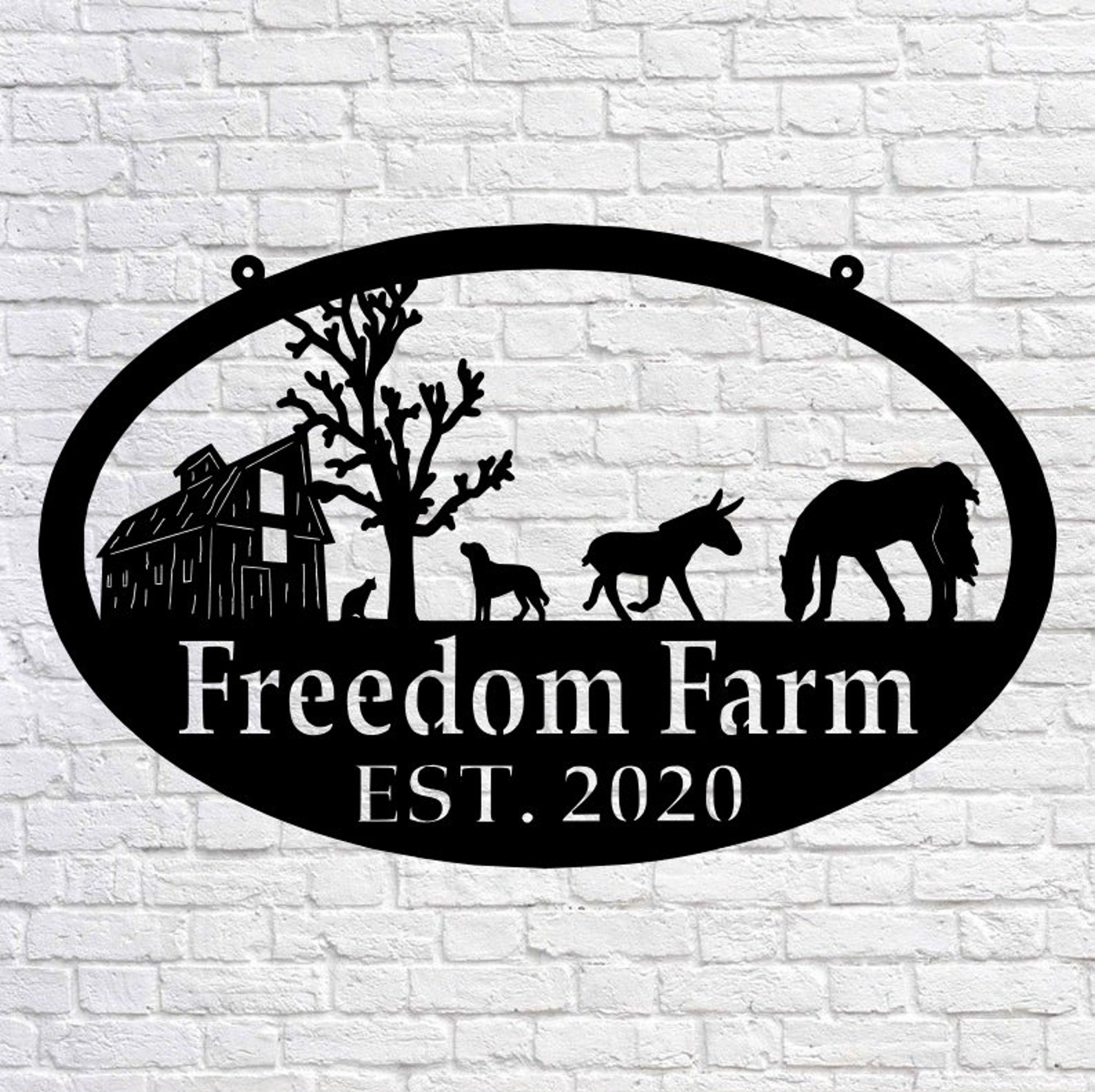 Farm Sign – Barn, Horse, Donkey, Cat, Dog, Personal Metal Art, Wedding Gift