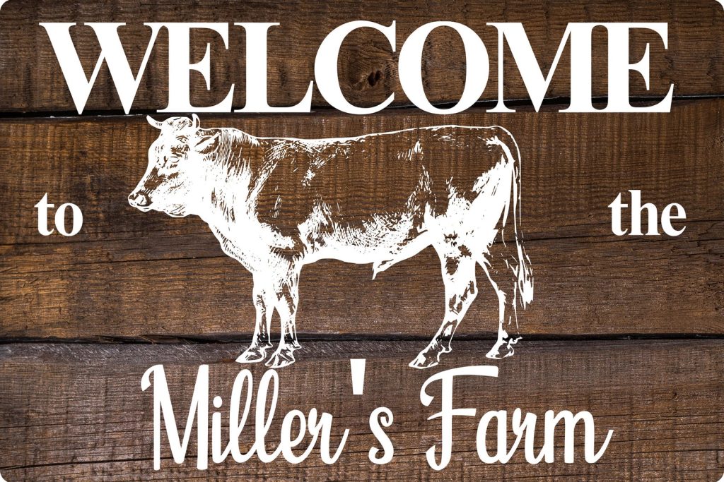 Be the first to review “Farm Welcome Sign – Bull & Wood, Personal Metal, 8×12 or 12×18”