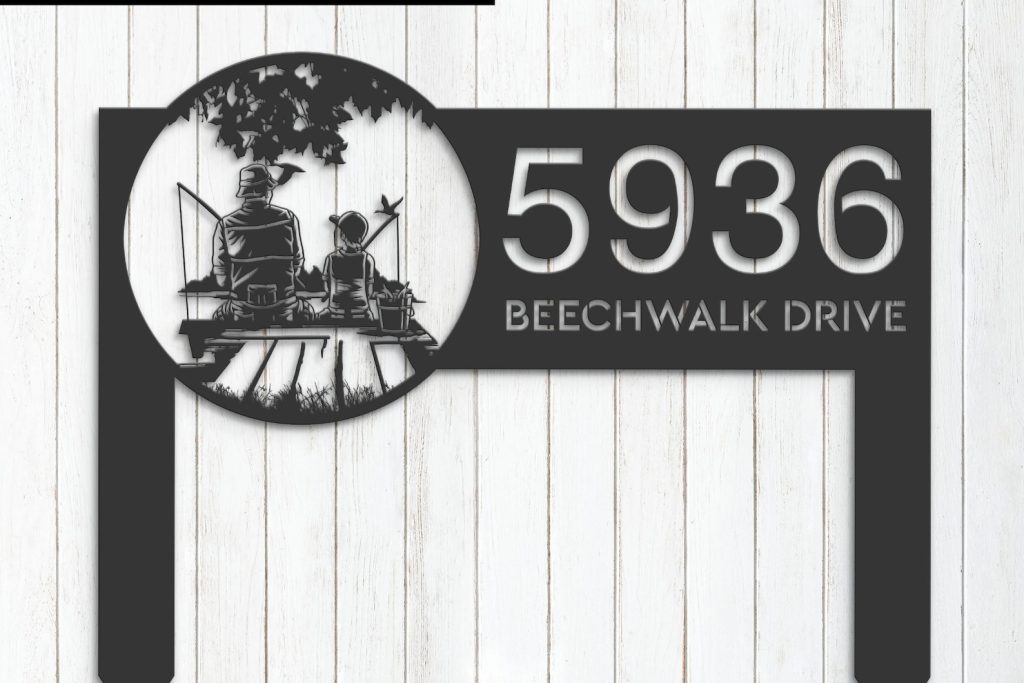 Be the first to review “Father and Son Fishing Sign – Personal Metal Address Decor”