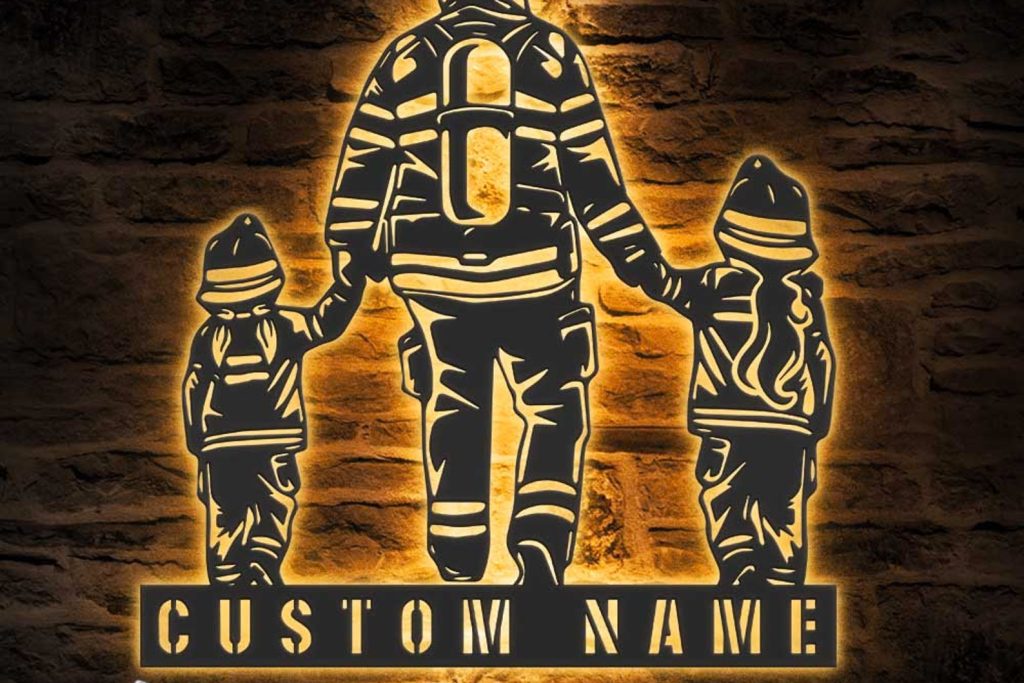 Be the first to review “Father-Daughter Firefighter Art with LED, Personalized Sign”