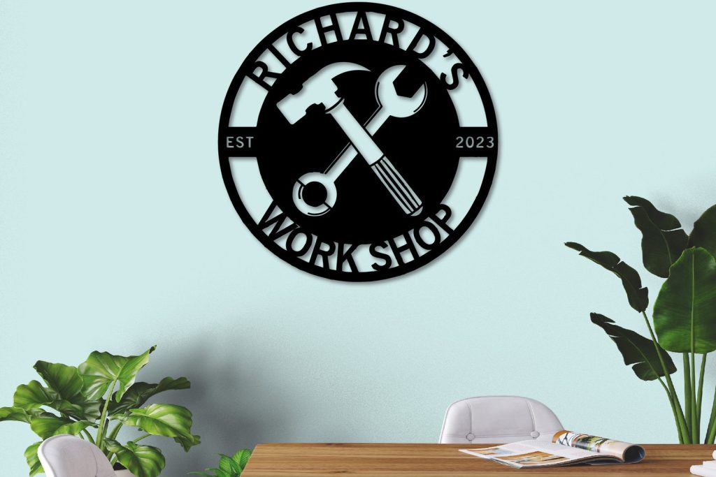 Be the first to review “Father’s Day Metal Sign, Papas Workshop Decor”