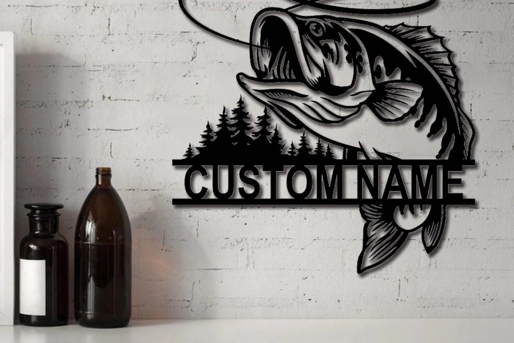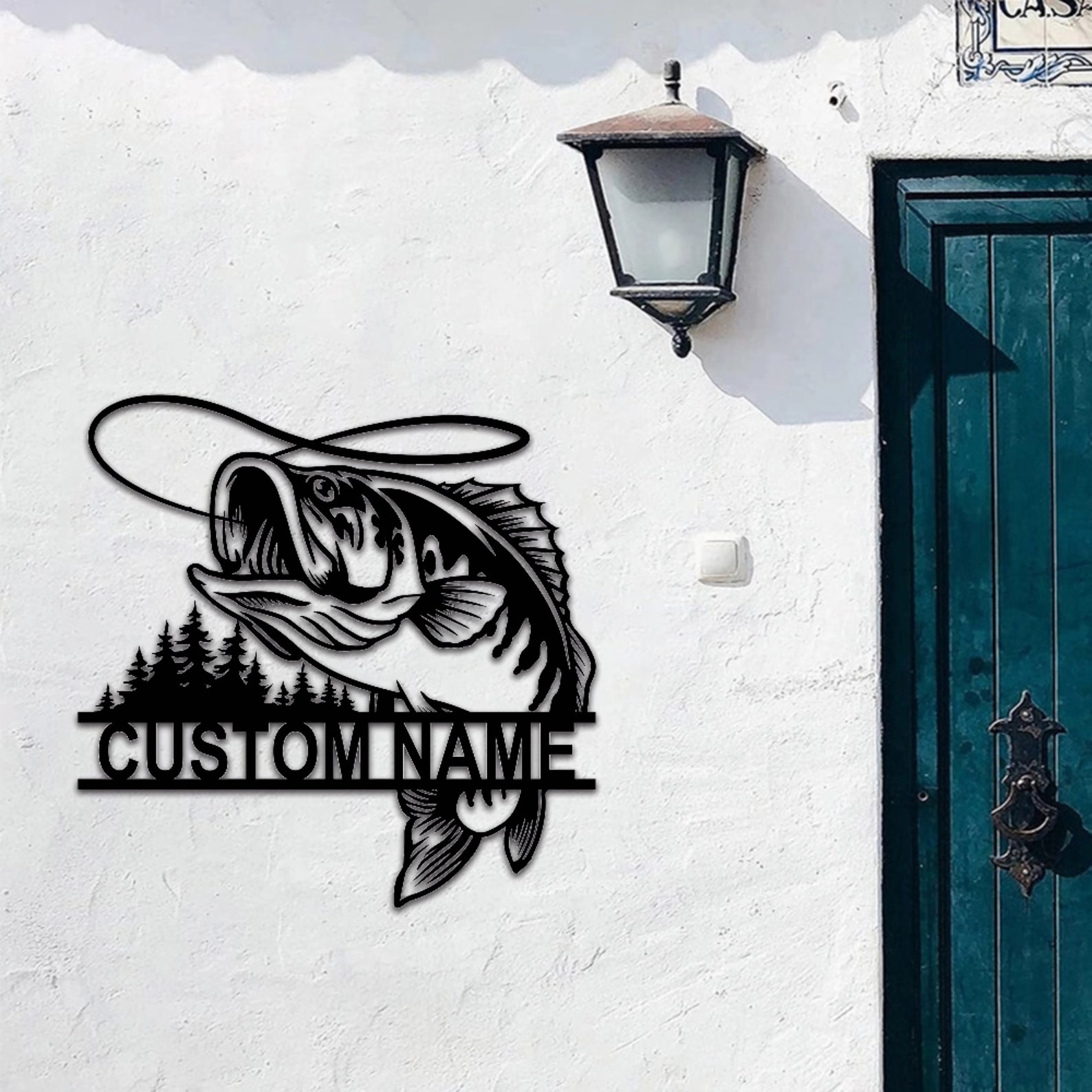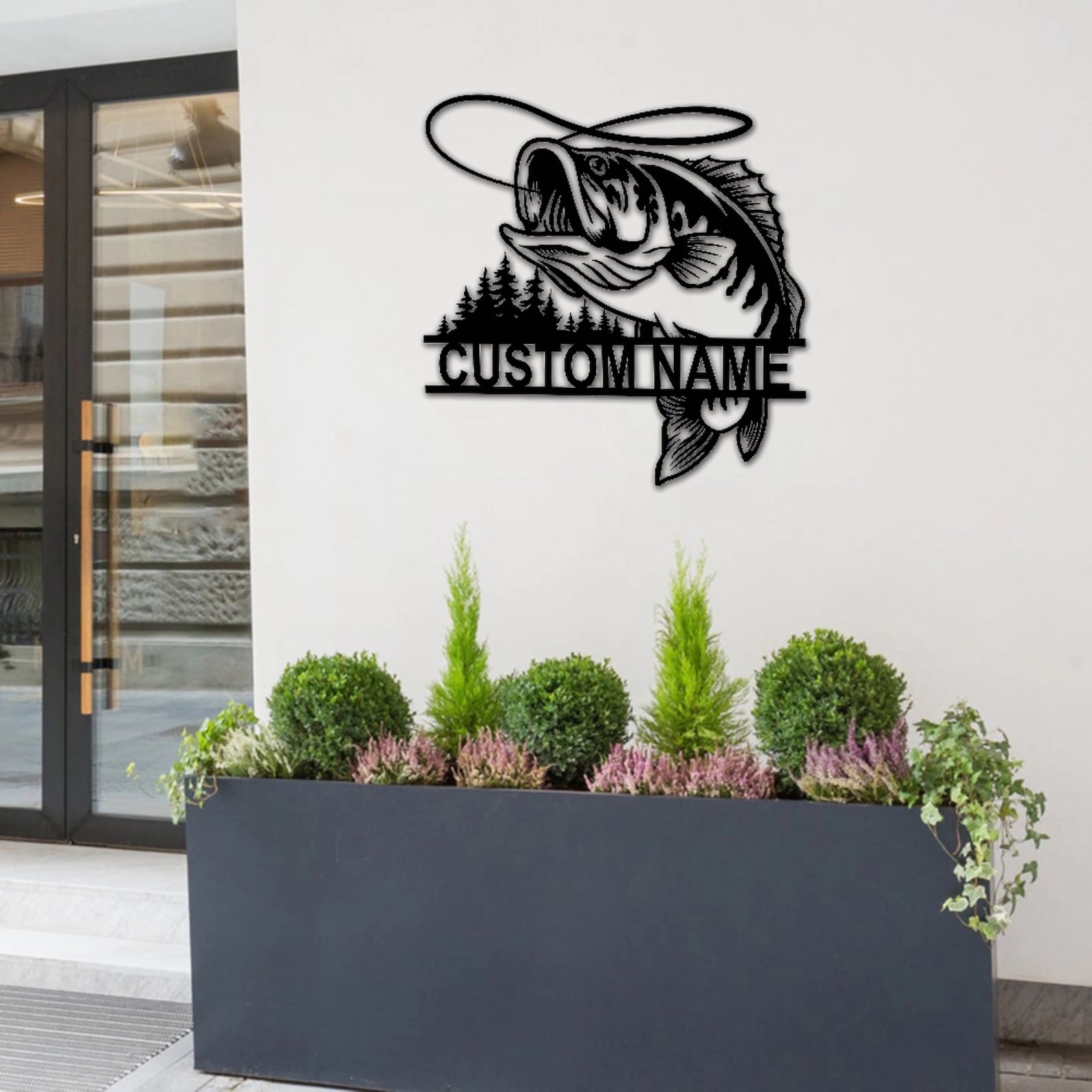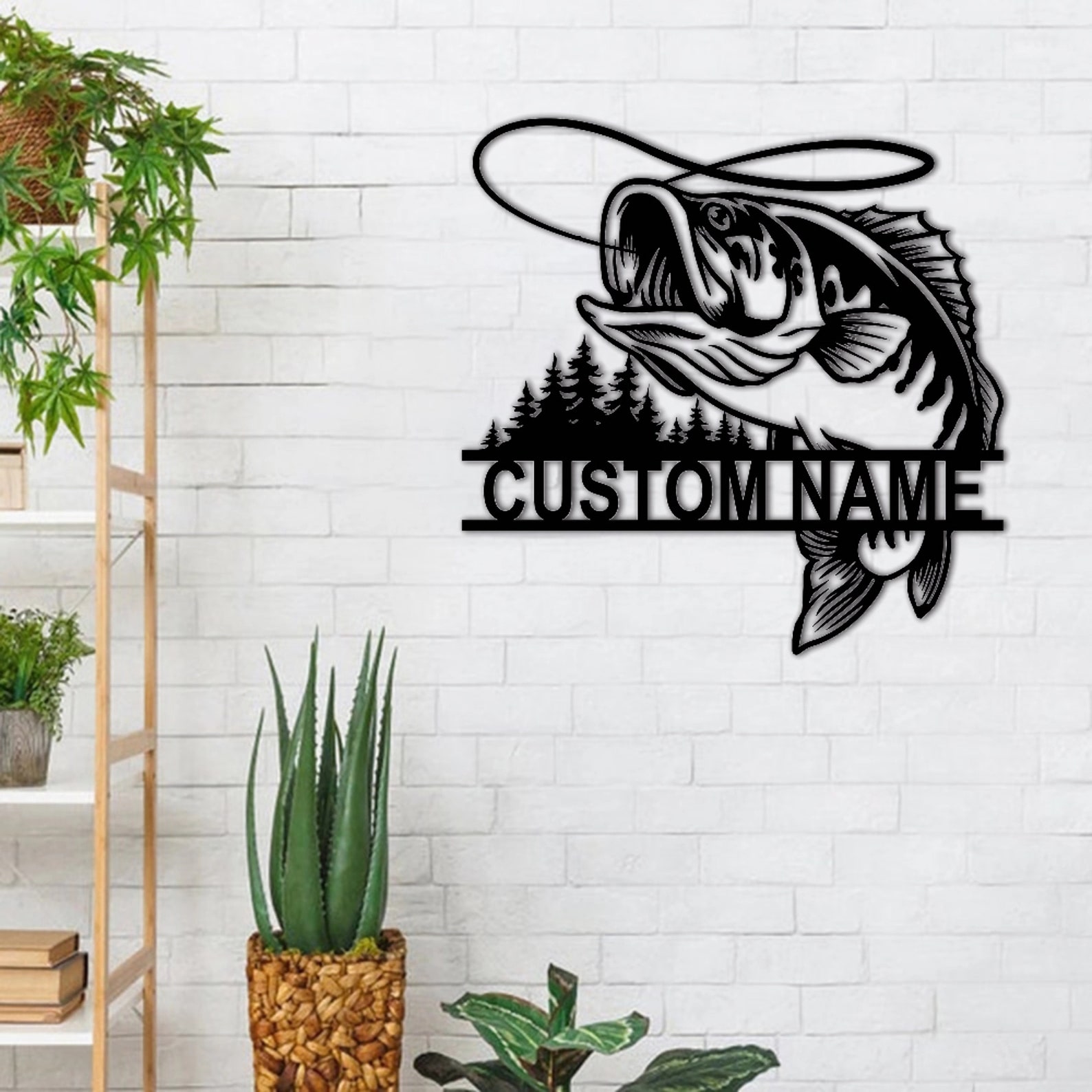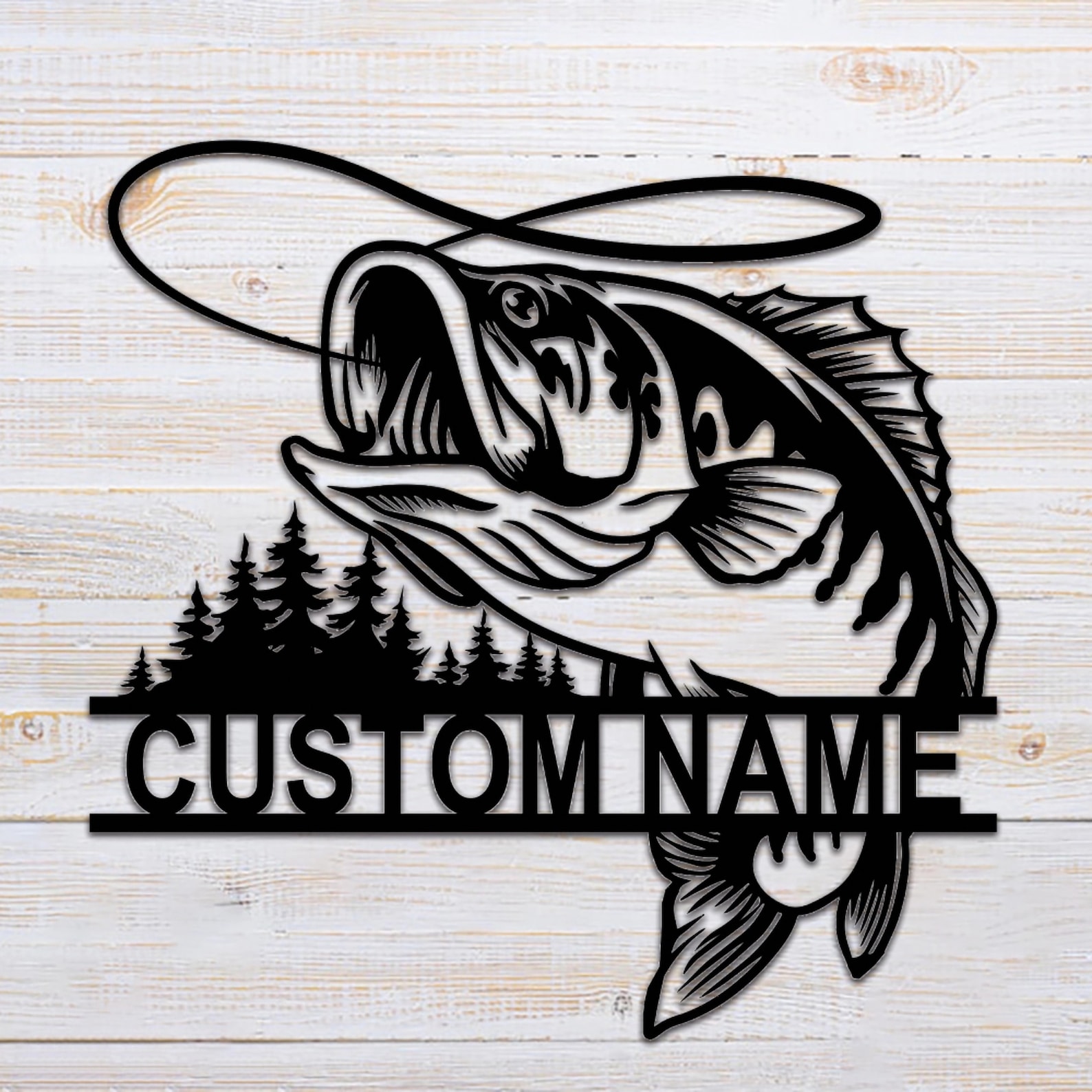 Fish Metal Name Sign, Bass Fishing Metal Monogram, Fishing Gifts for Men, Metal Fish Sign, Custom Fishing Metal Sign, Fisherman Gift