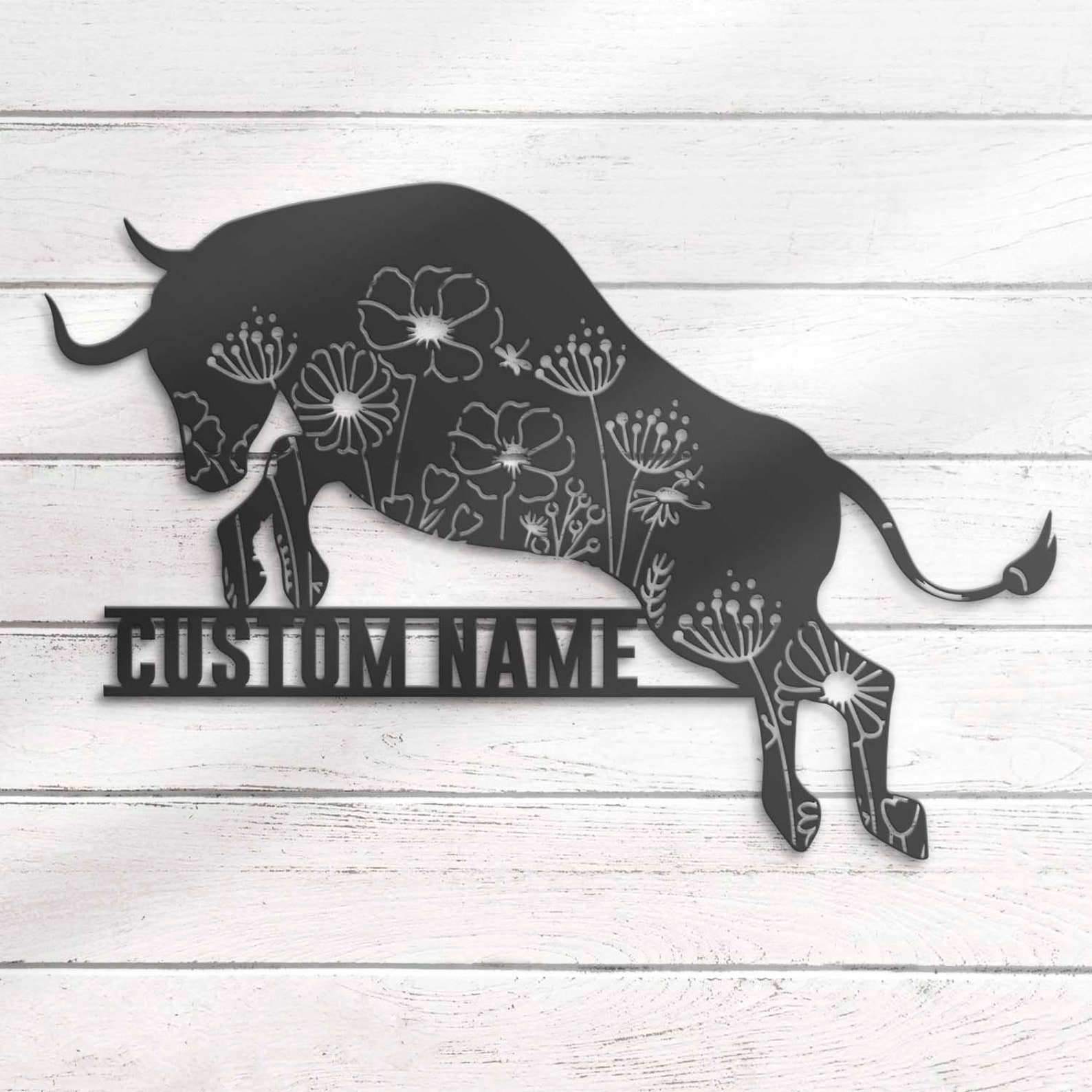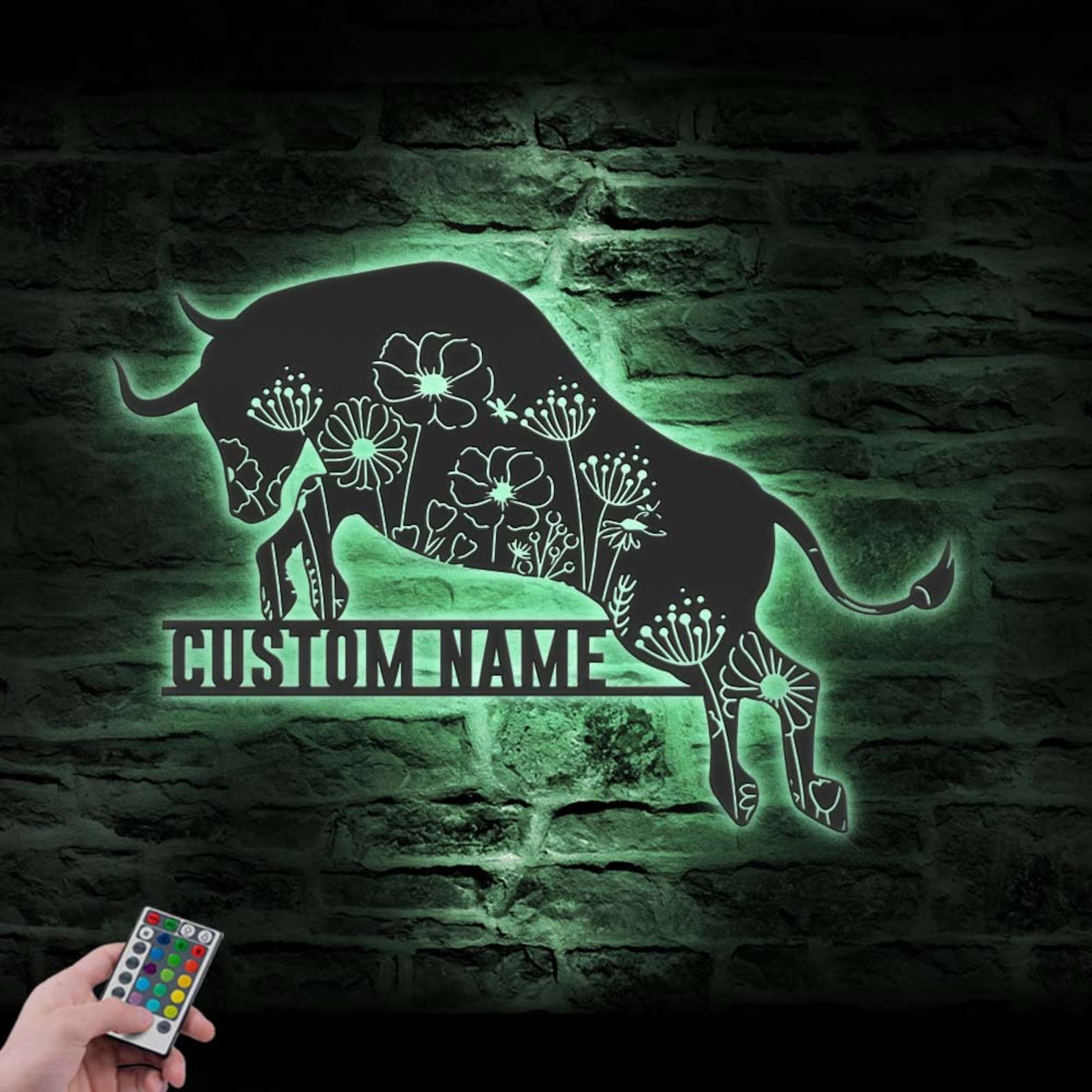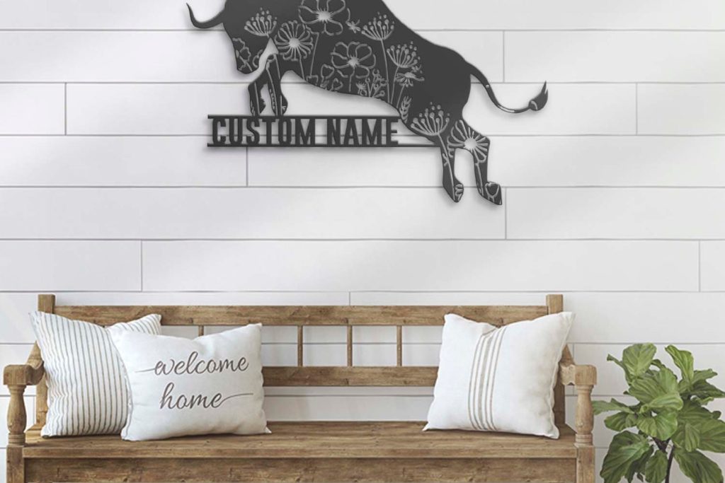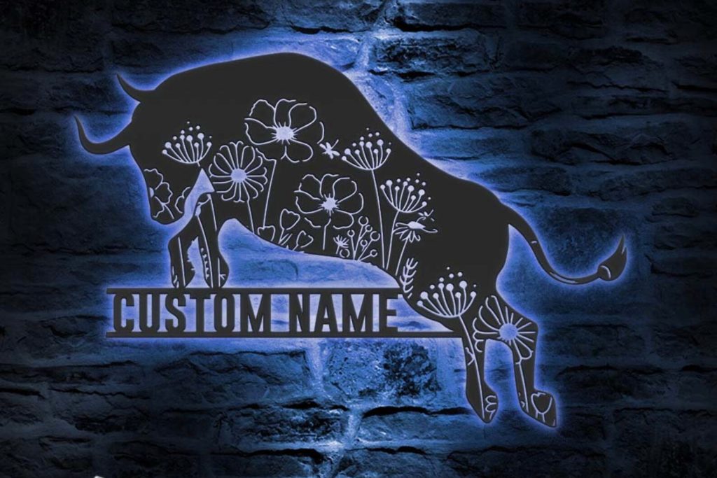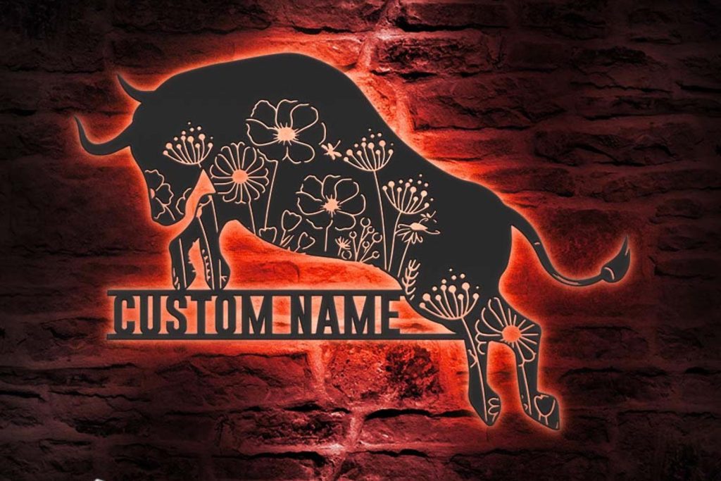 Floral Bull Art – LED Personal Buffalo Sign, Cow Barn Decor