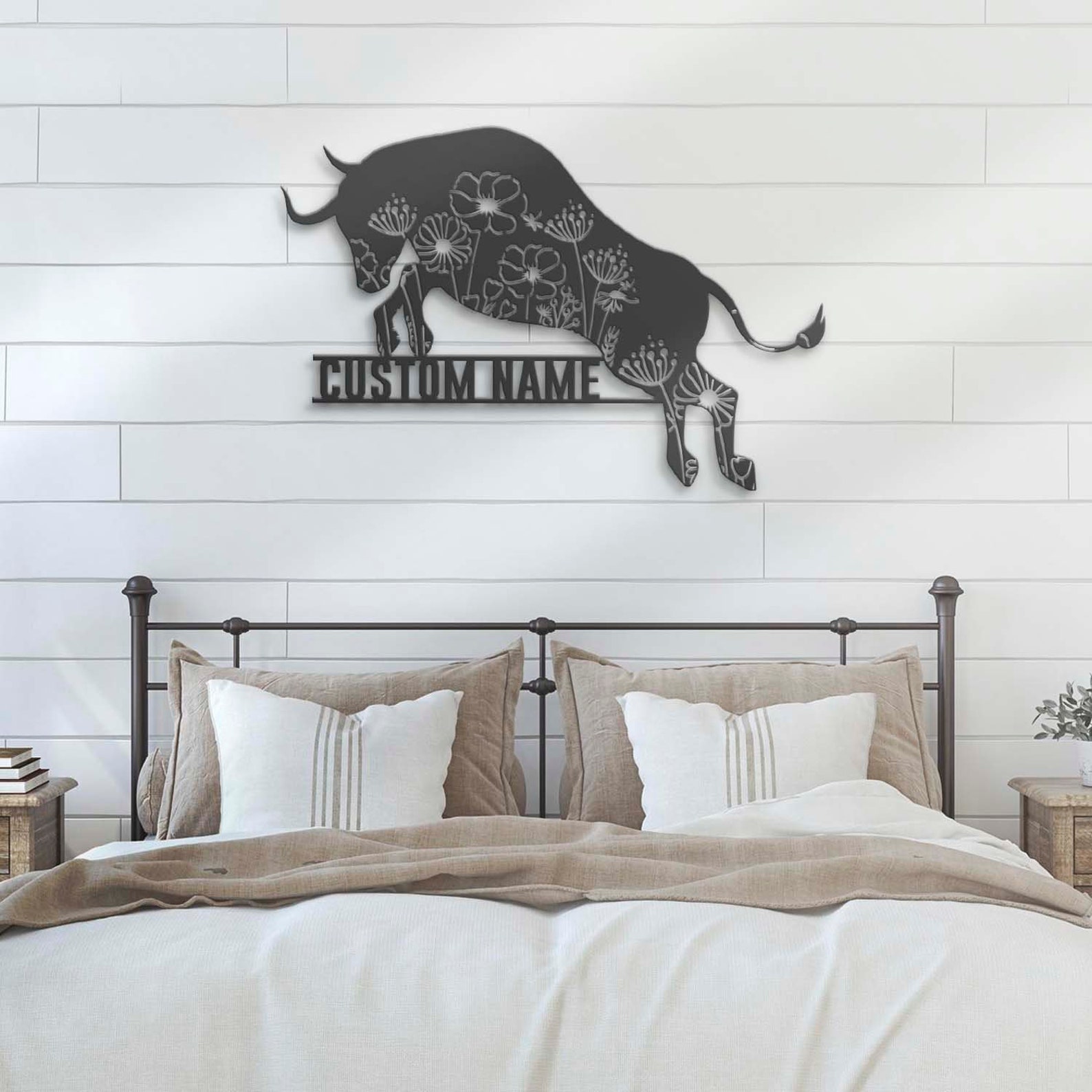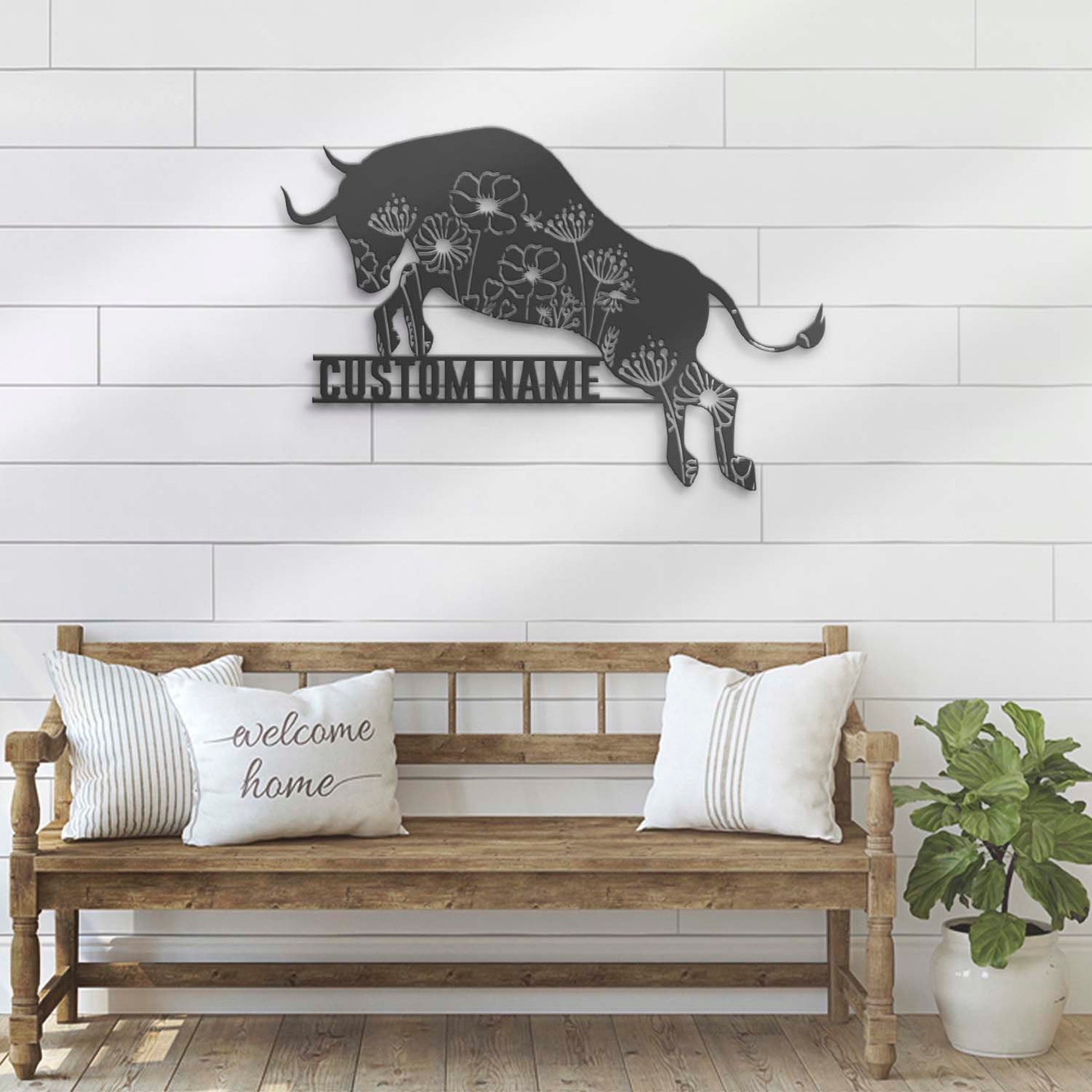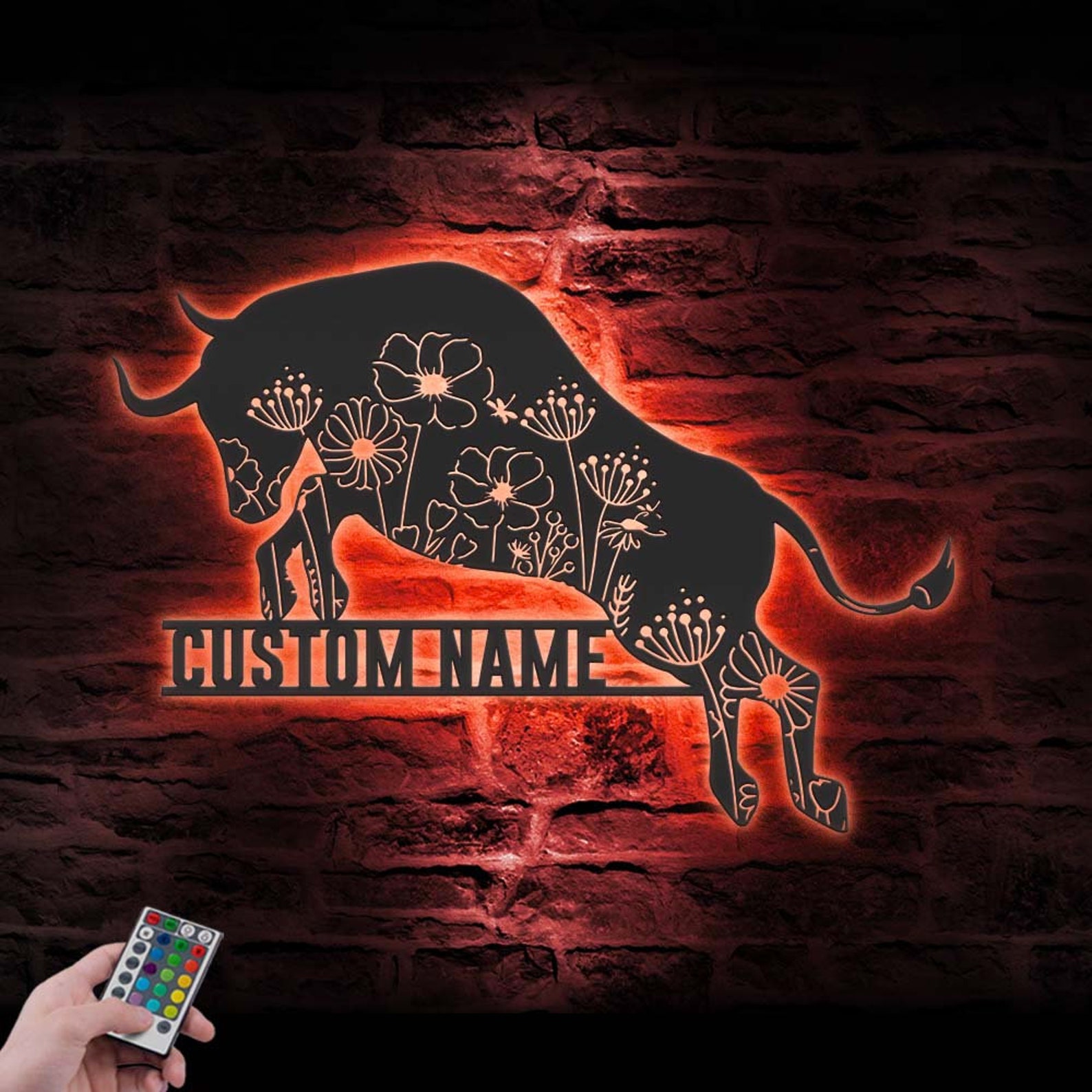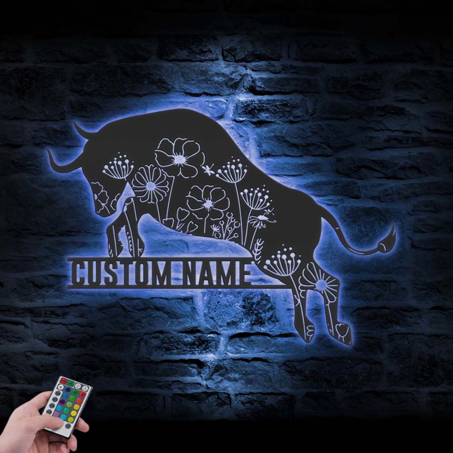 Floral Bull Art – LED Personal Buffalo Sign, Cow Barn Decor