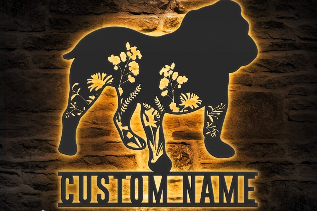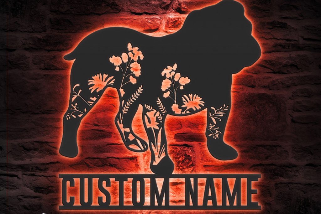 Be the first to review “Floral English Bulldog Sign, LED Light, Pet Lover Gift”
