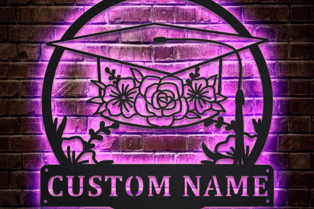 Be the first to review “Flower Graduation Metal Sign with LED V2 – Wall Decor”