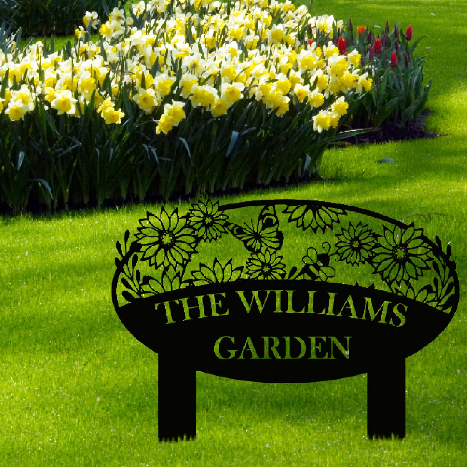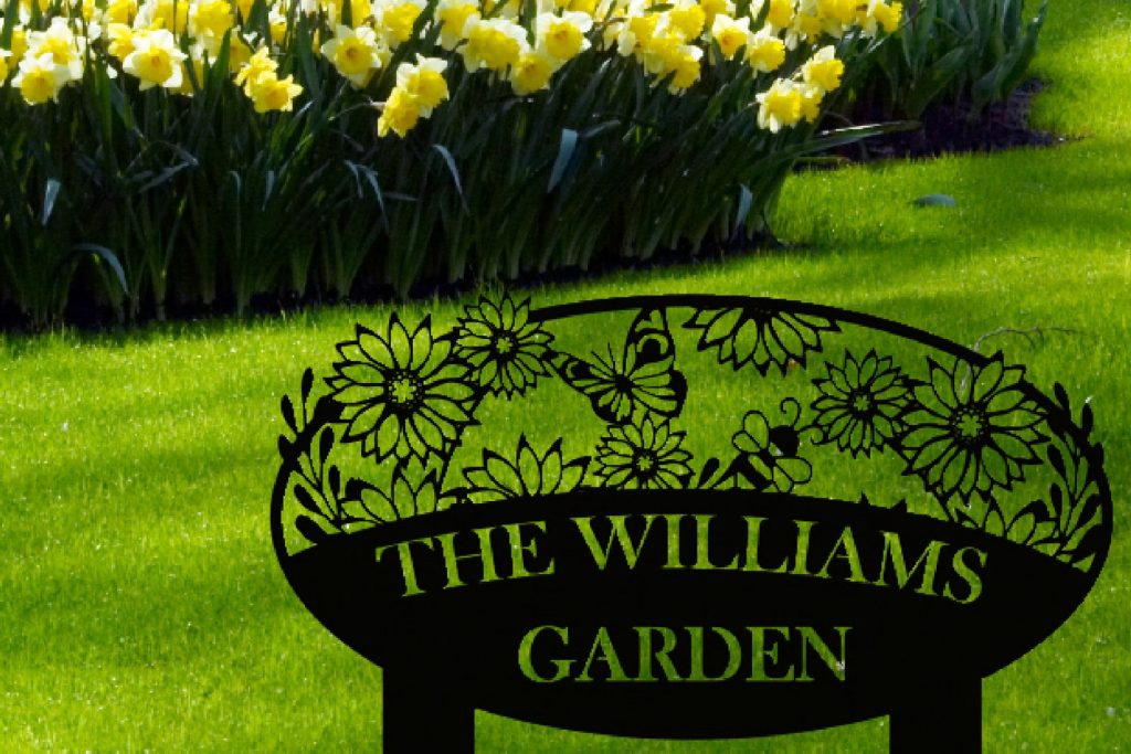 Custom Metal Garden Sign, Flower Sign with Stakes, Personalized Garden Decor, Outdoor Metal Sign, Housewarming Gift, Large Garden Sign Art