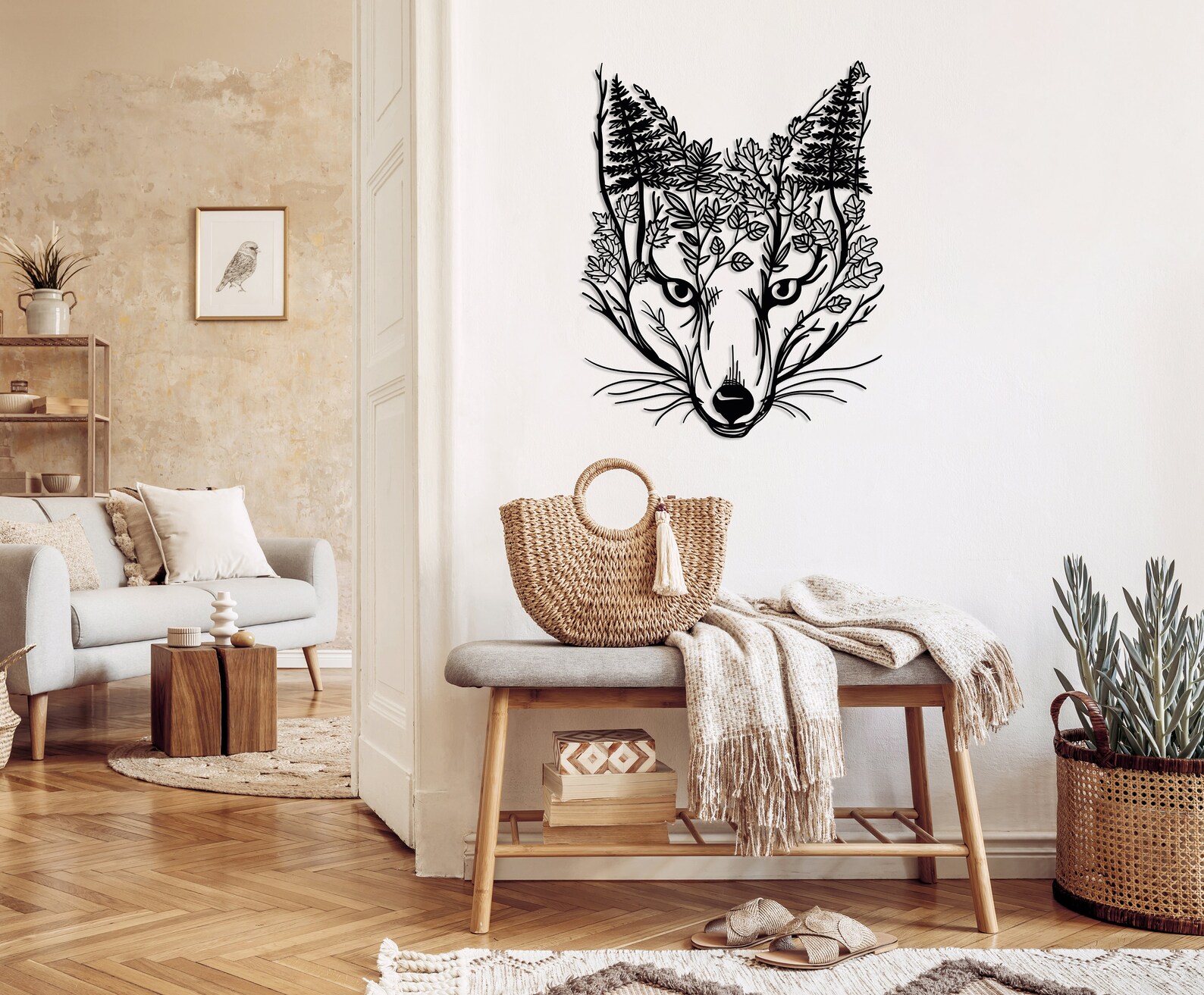 Fox Tree Metal Wall Art, Metal Fox Decor, Fox Wall Hanging, Living Room Decor, Large Outdoor Farmhouse Decor, Wildlife Lovers Gift, Tree Sign