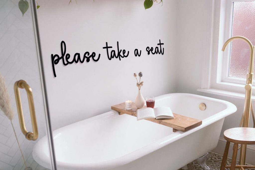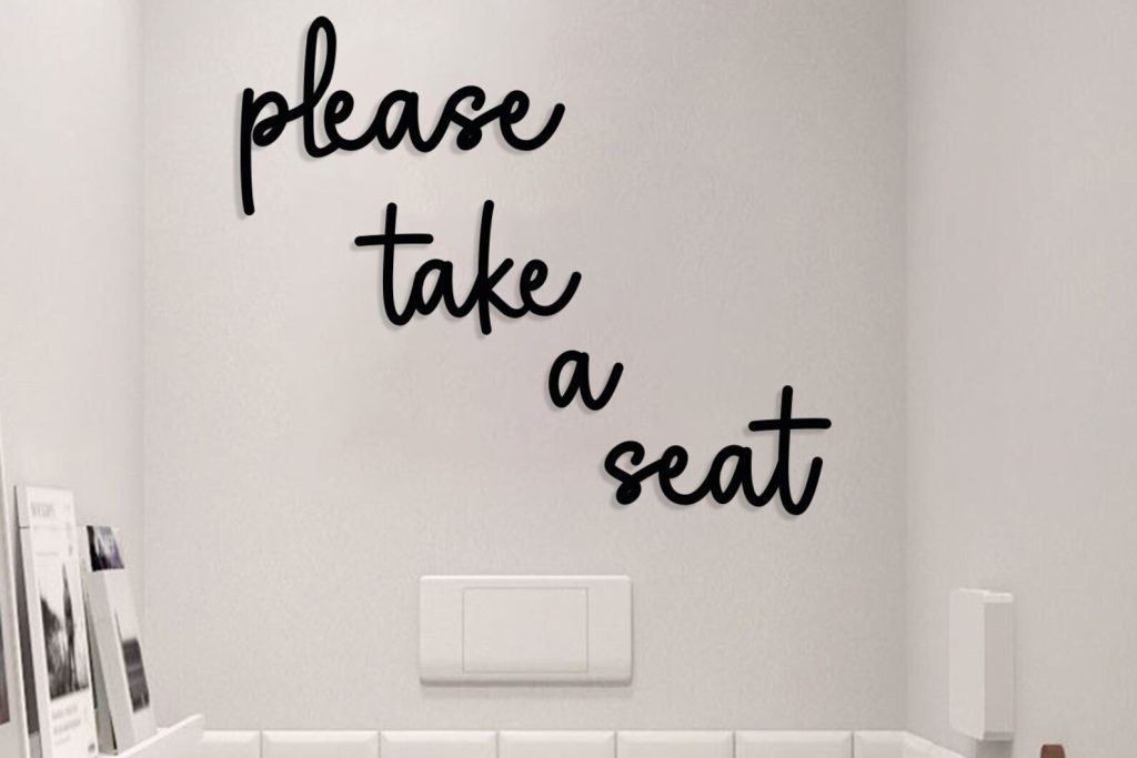 Please Take a Seat Metal Wall Sign is a perfect match with your modern, minimalist bathrooms and laundry rooms.