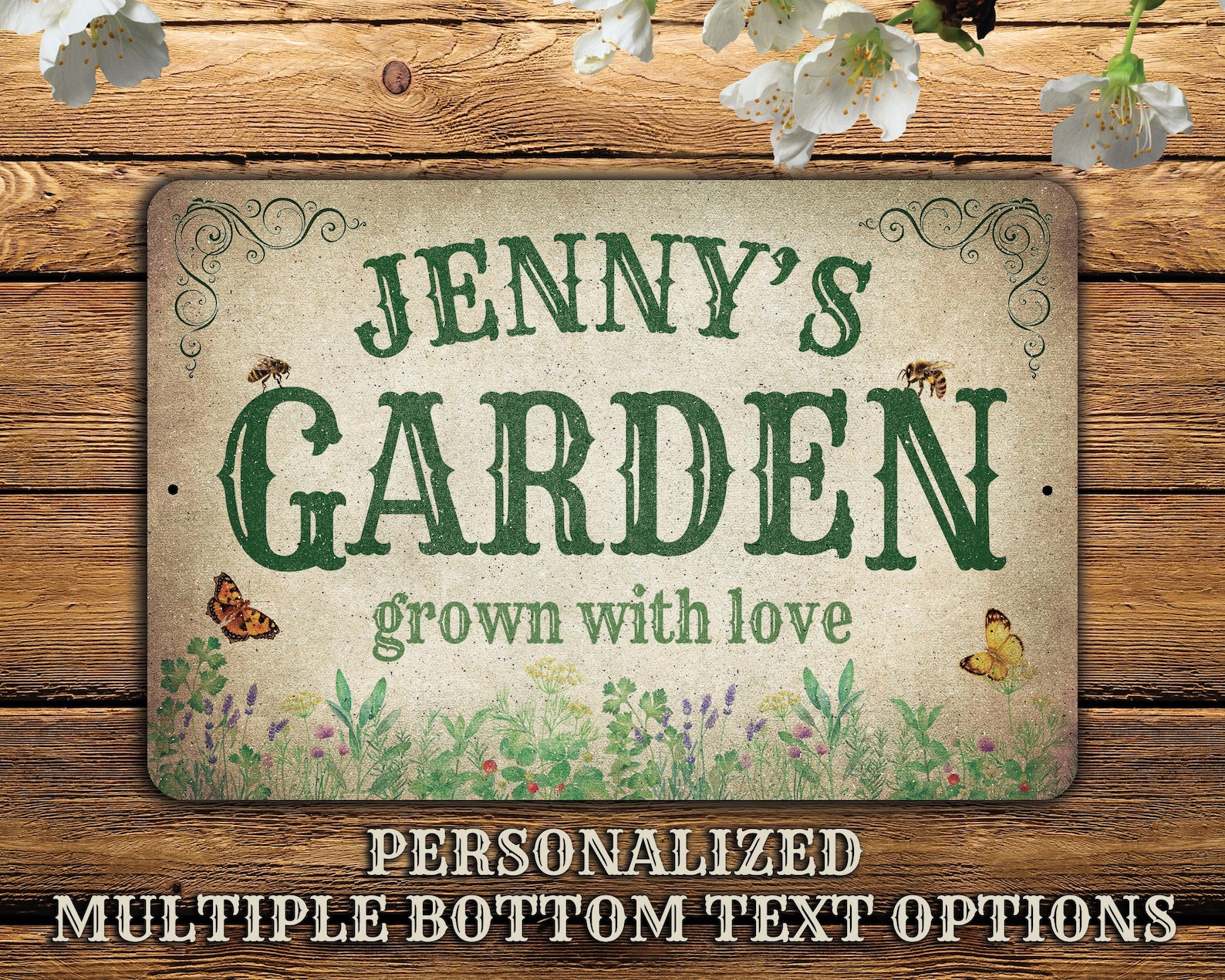 Personalized Metal Garden Sign | Customize this Sign with a first name, family name or the special name of your garden | Gift for gardeners | Choose from 7 different text options | Designed with a rustic, distressed look | For that special person who can grow anything! | Makes a unique, one-of-a-kind gift!