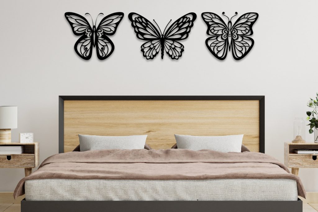 Gold Butterfly Metal WallArt,Butterfly Home Decor,Flower Butterfly Wall Sign, Butterfly Sing, Large Metal Decor,3Pieces Butterfly Wall Decor, Above Bed Decor, Butterfly Decor