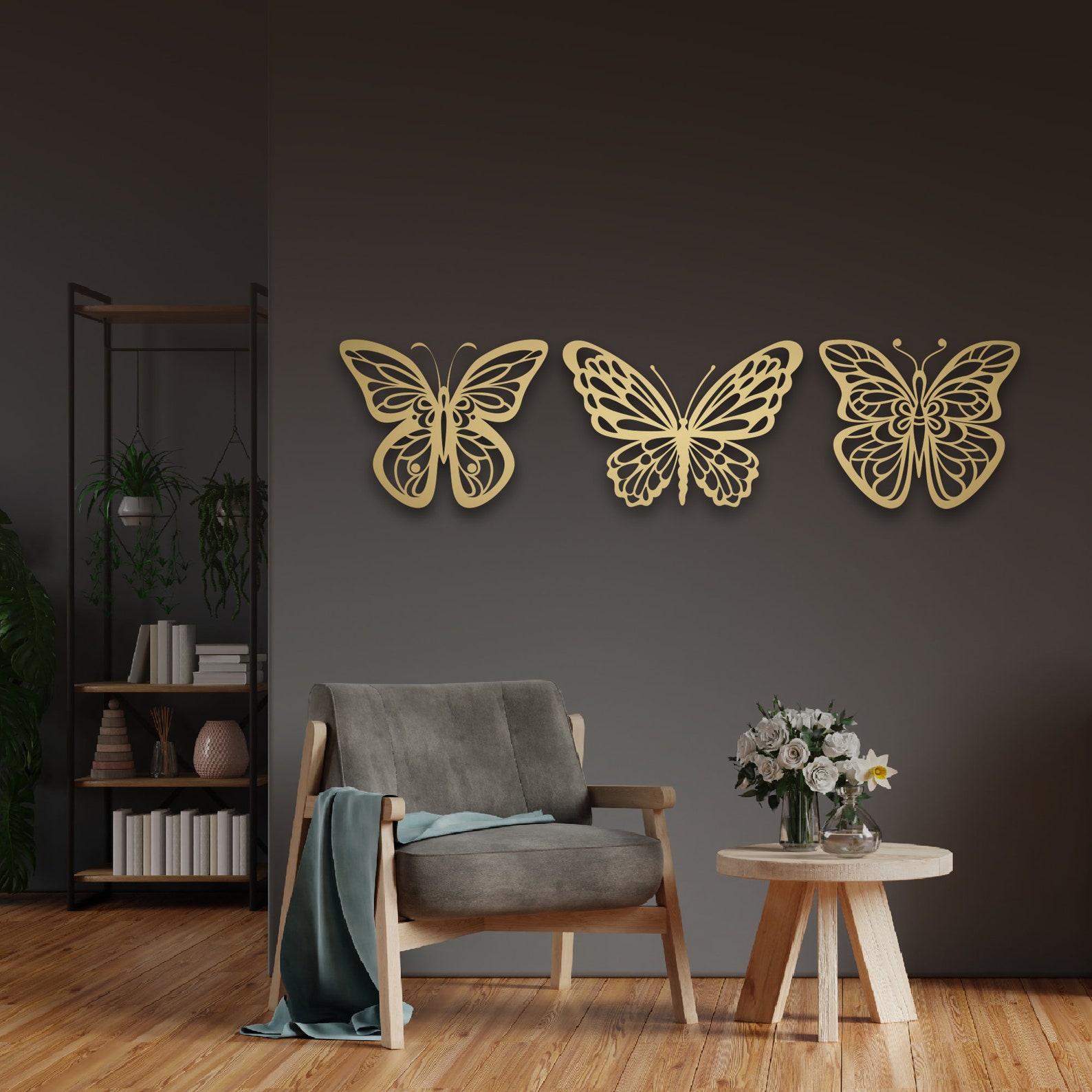 -3D SHADOW EFFECT: This Gold Butterfly metal wall art casts a beautiful shadow because it stays 2 cm away from the wall by elevation screws. The shadows create a cool three-dimensional feel that makes this metal wall decor something that all your friends and family will talk about and love. When placed in natural light, the shadow of the floral wall art tends to move around the art throughout the day, which makes the art fun to watch.