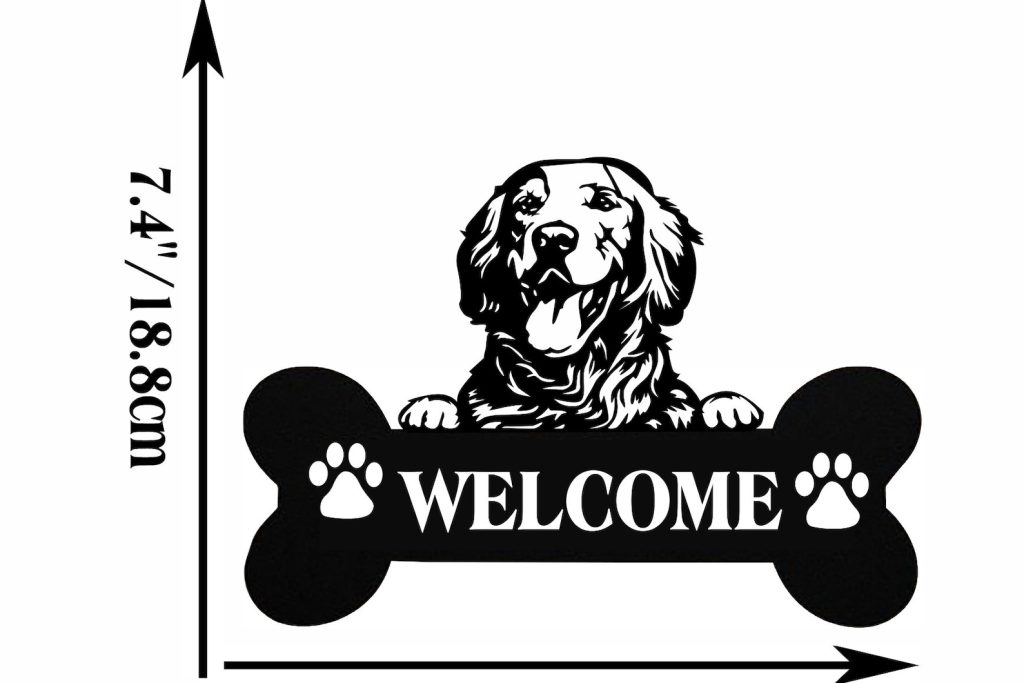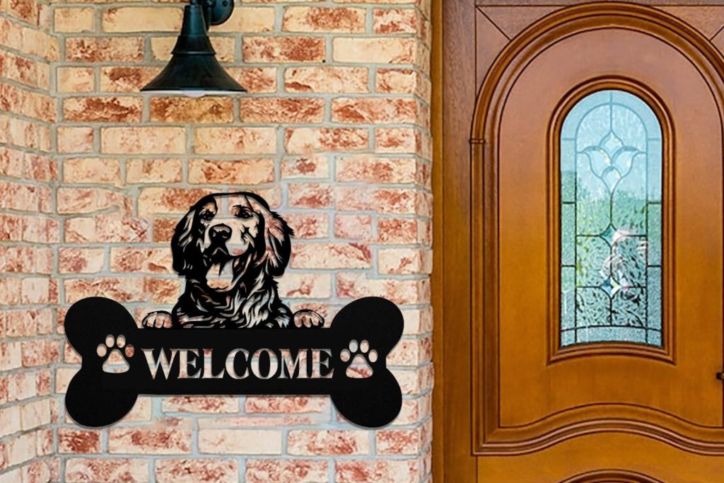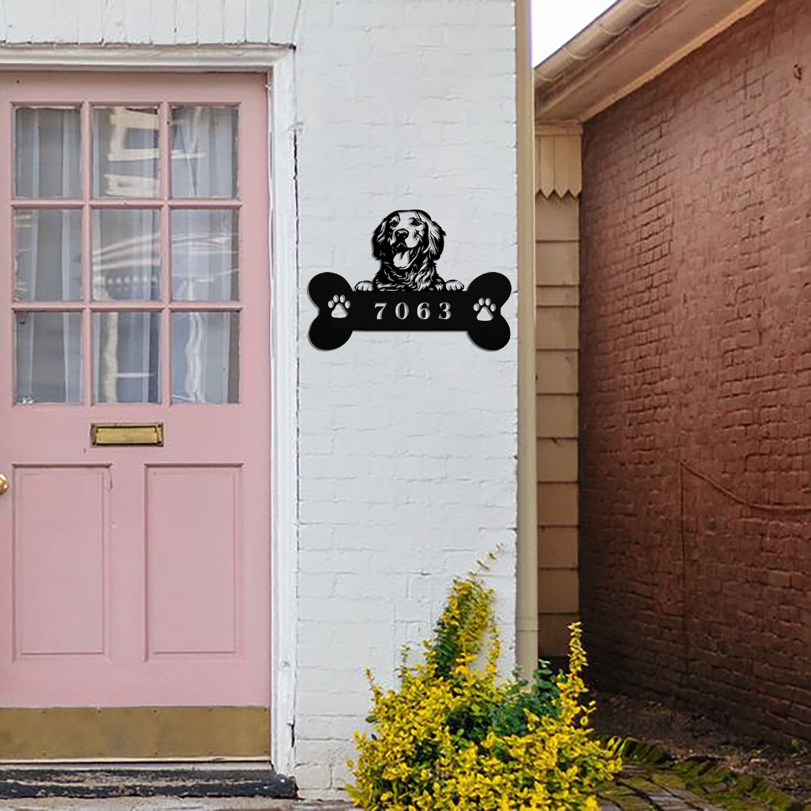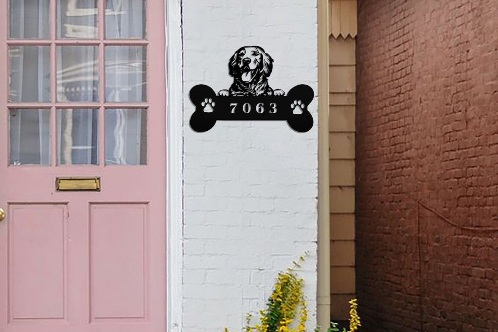Golden Retriever Metal House Number Sign, Horizontal Address Plate