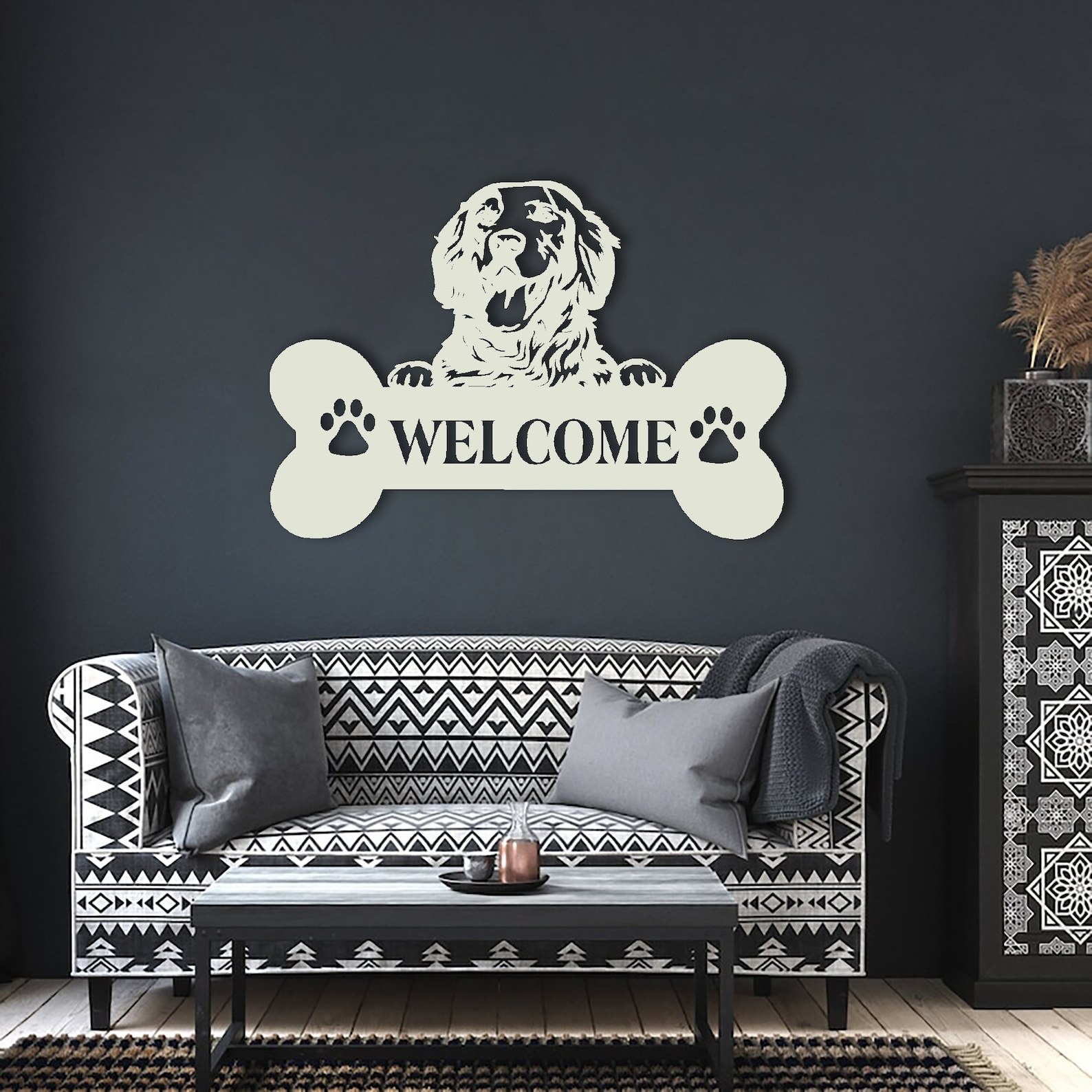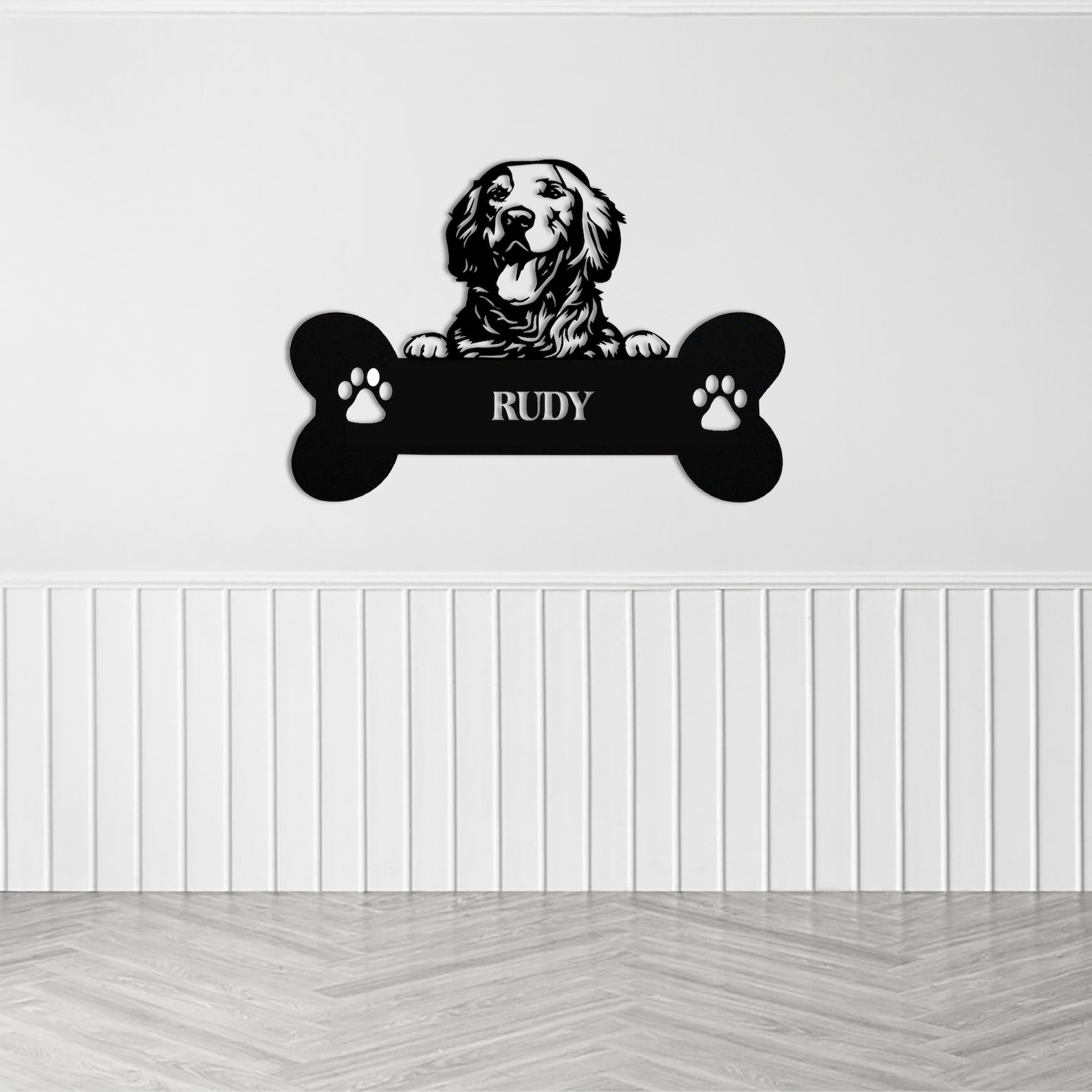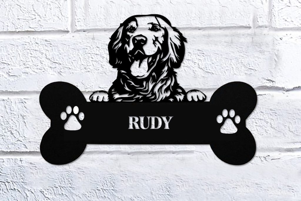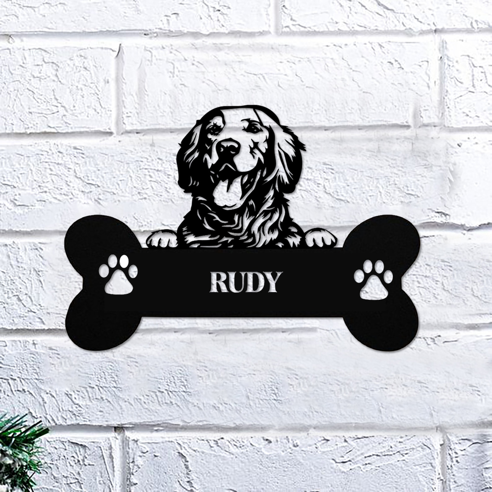 Golden Retriever Metal House Number Sign, Horizontal Address Plate