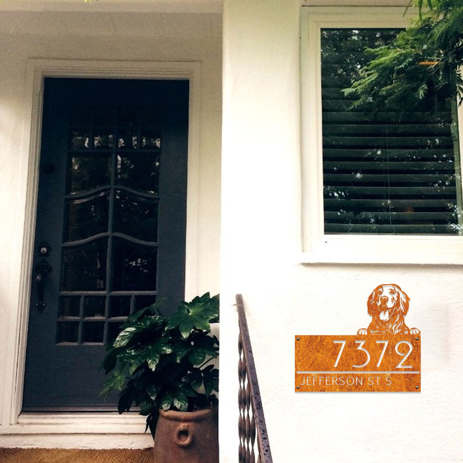 Custom Golden Retriever Metal House Number Sign, Horizontal Metal Address Sign, Dog Address Sign, Outdoor Number Plate, Housewarming Gift ,Animal Lover Gift, Personalized Gift, Metal Dog Plate