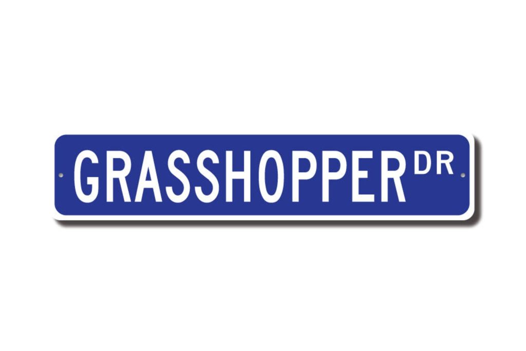Grasshopper lovers check out this awesome street sign! This will make the perfect piece for any Grasshopper lover, or maybe you are a Grasshopper fan looking for a cool decor piece. Made of premium aluminum it will stand the test of time. This sign will look great in any room, home den, cave, or office! Get this sign for your favorite Grasshopper aficionado !