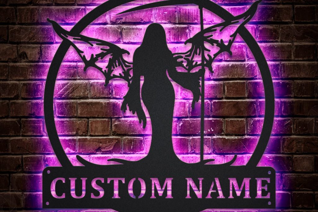 Be the first to review “Grim Reaper Sign – LED Custom Metal Skull Decor”