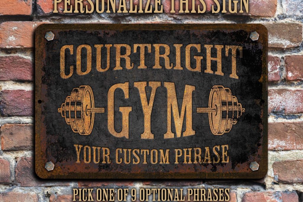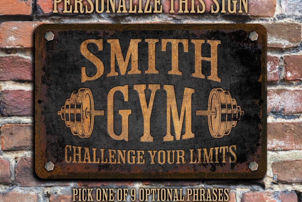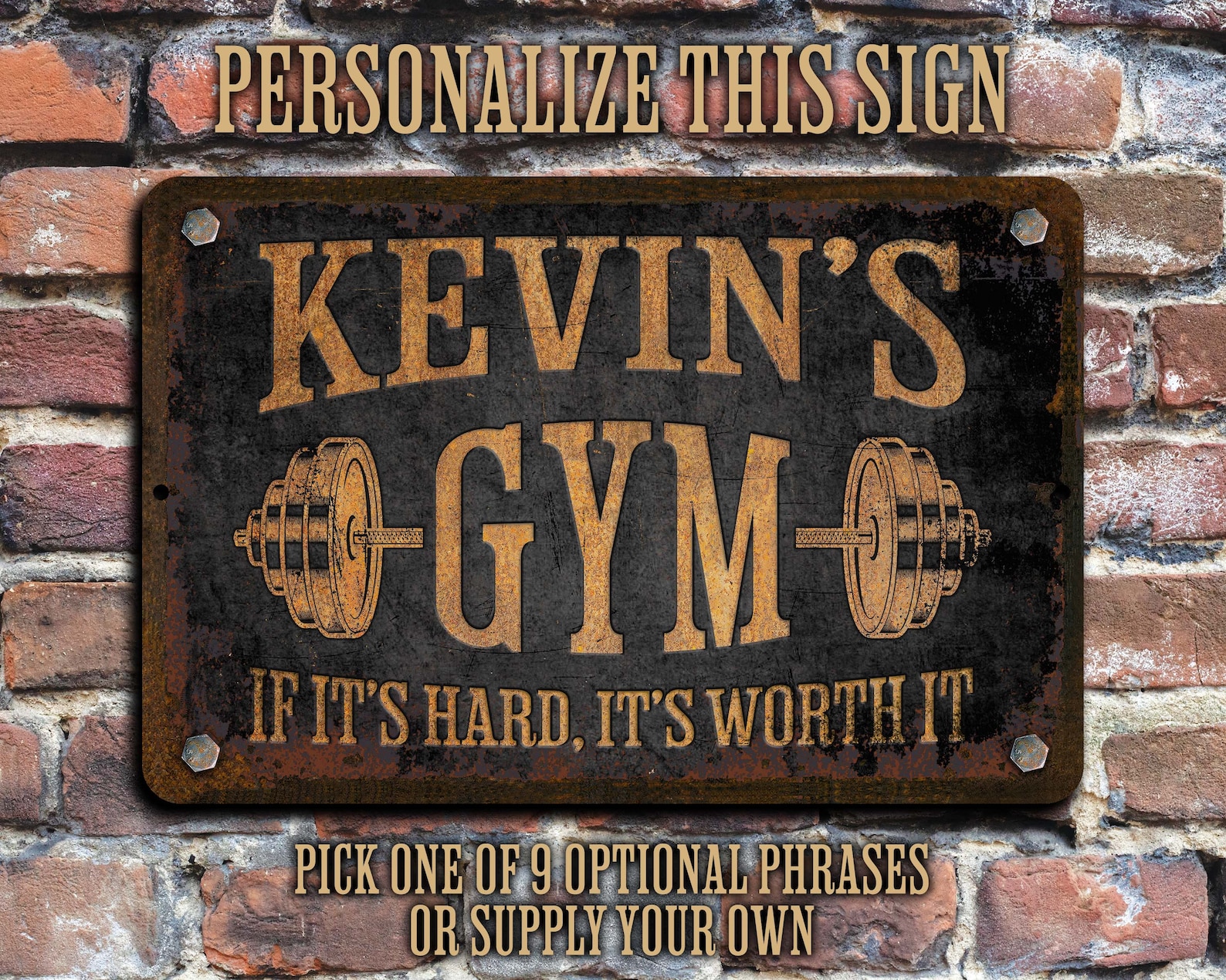 Personalized Home Gym or fitness Center Aluminum Sign | Great Gift Weight Trainers or Athletes | Customize this sign with your first name or last name. Designed with a rugged aged rusty look. Great gift for your workout warrior.