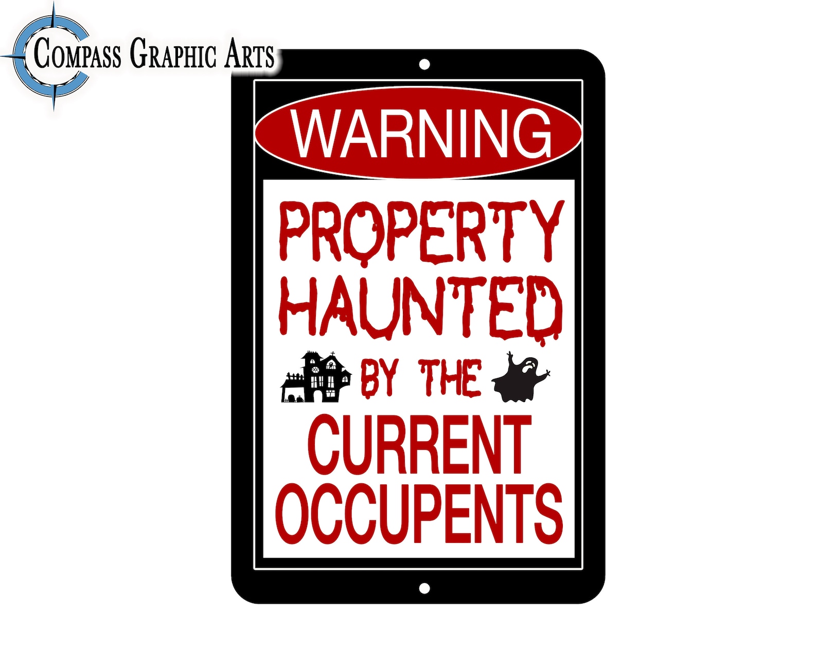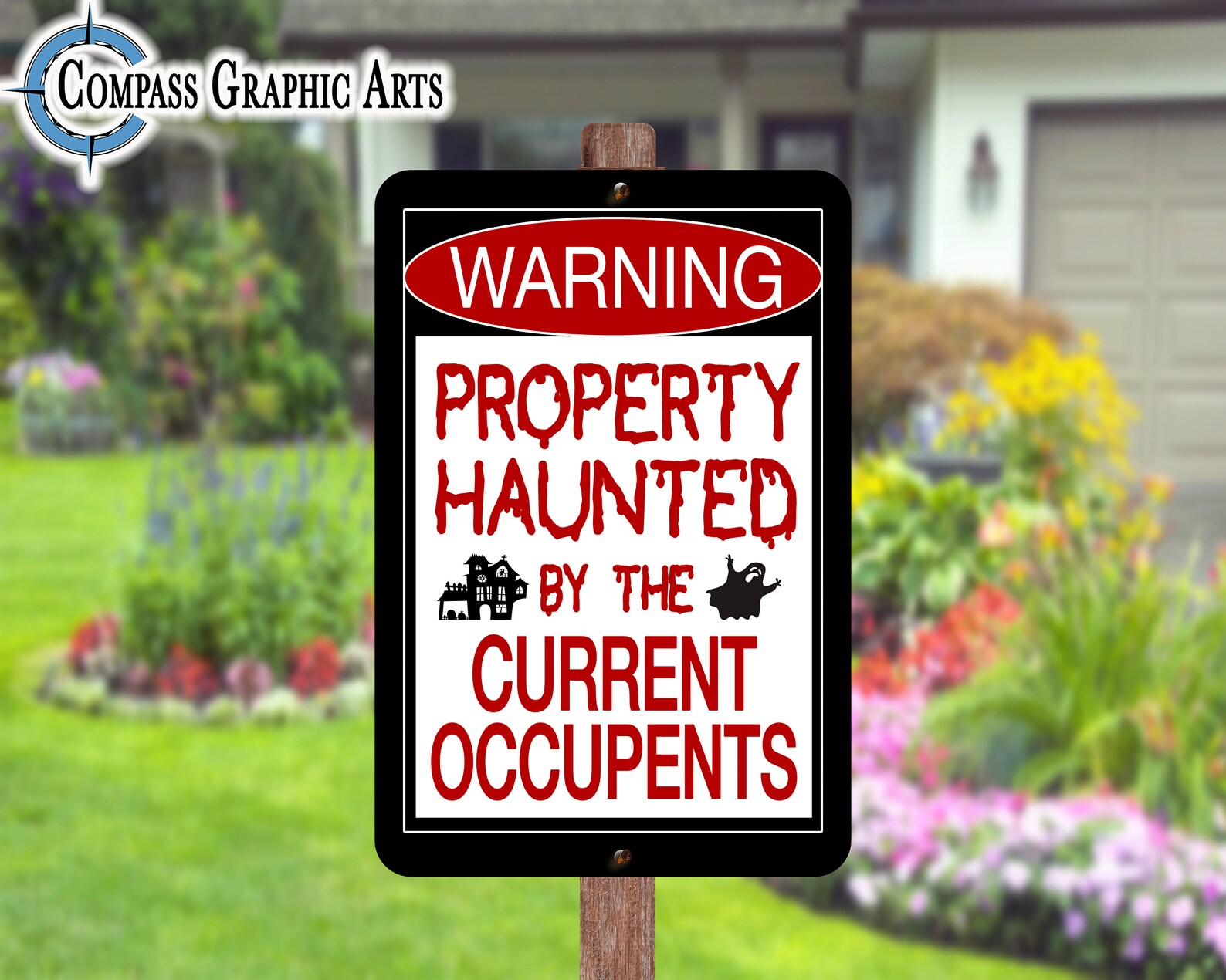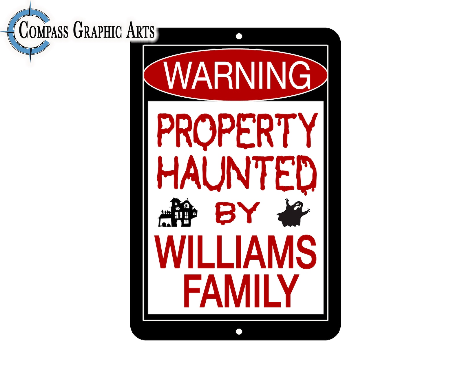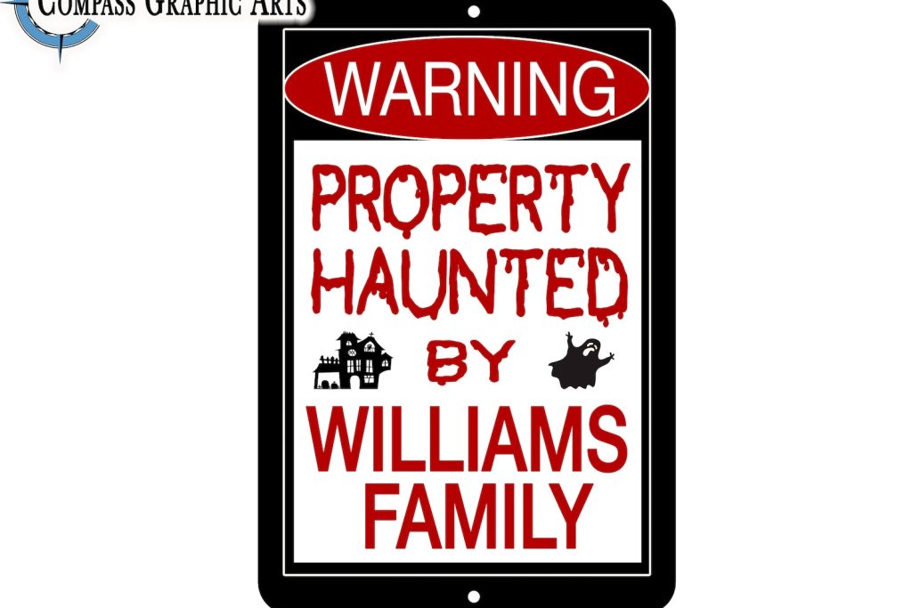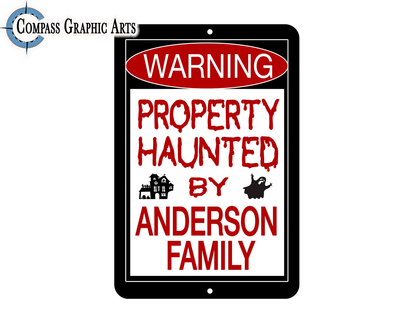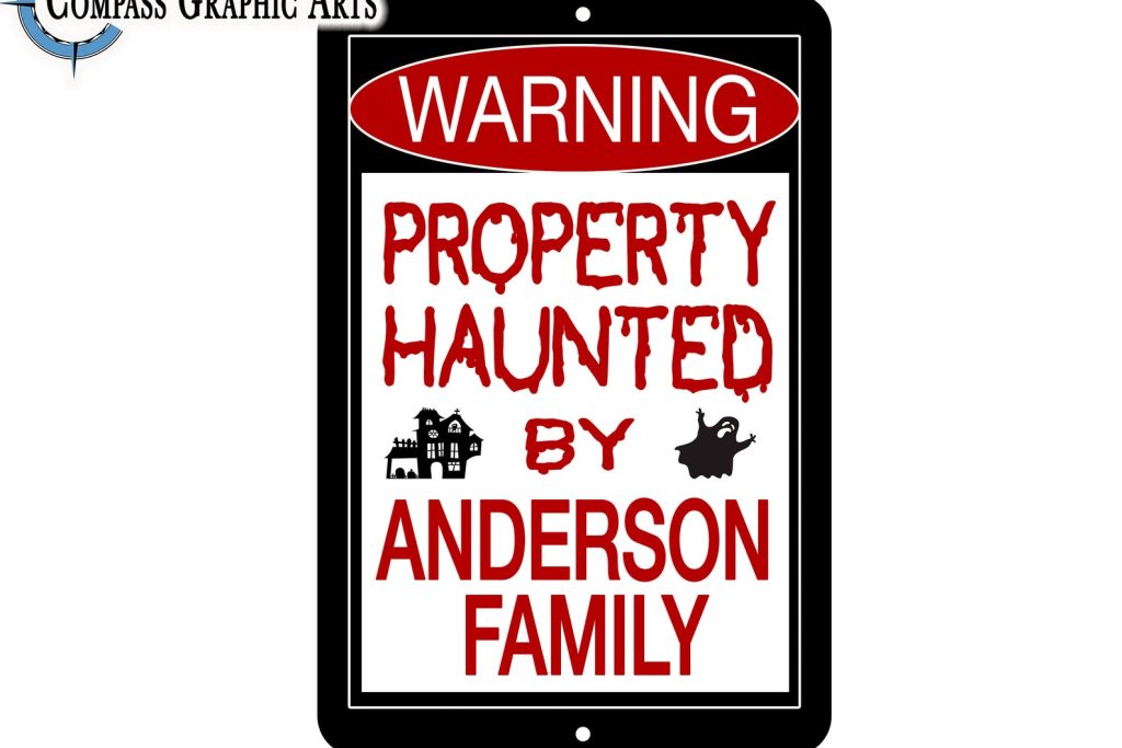 Custom Halloween Sign- Warning Property Haunted- Yard Decor- Personalized Metal Sign- Aluminum- House Warming Gift- Humor Wall Hanging 18