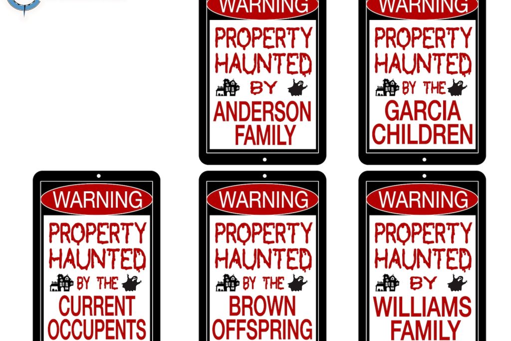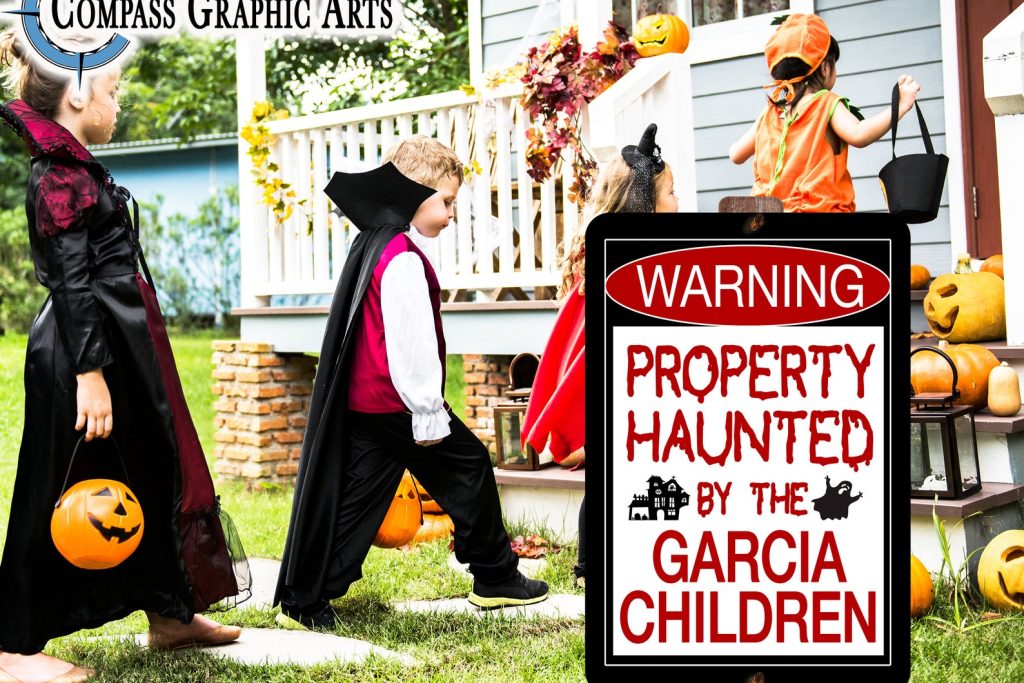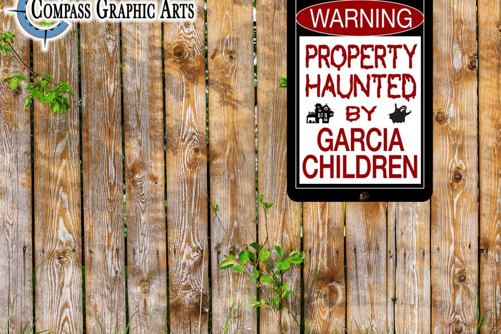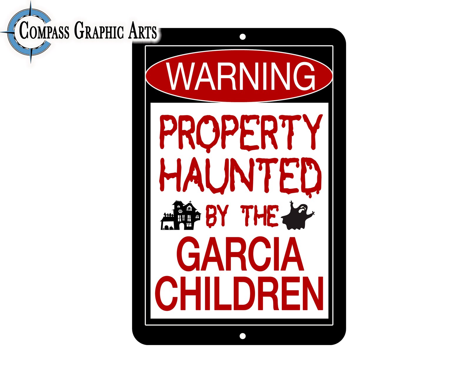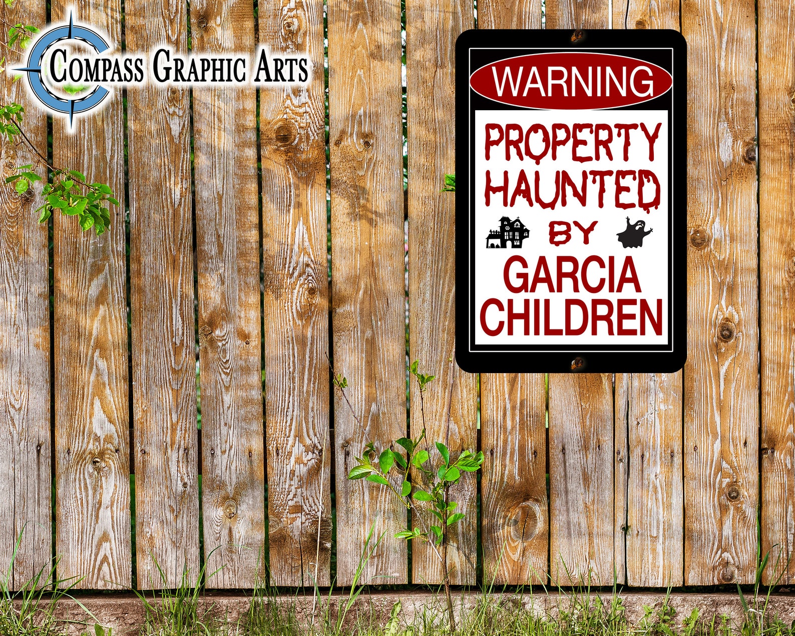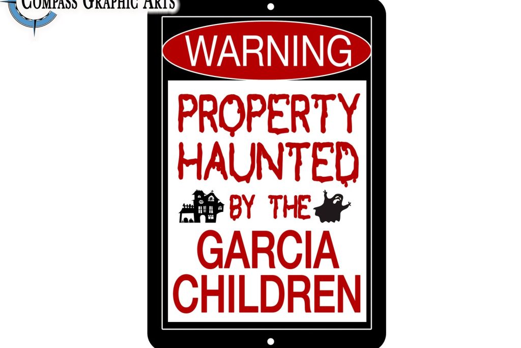 Custom Halloween Sign- Warning Property Haunted- Yard Decor- Personalized Metal Sign- Aluminum- House Warming Gift- Humor Wall Hanging 18