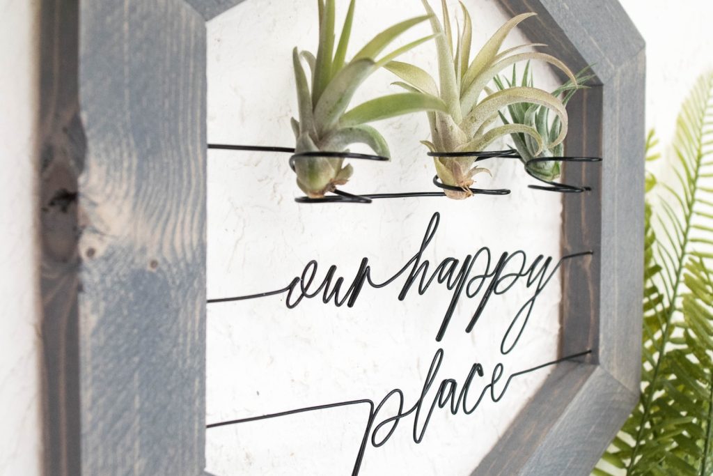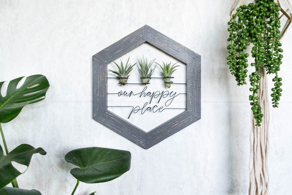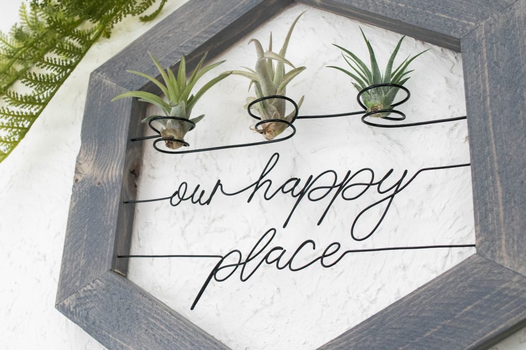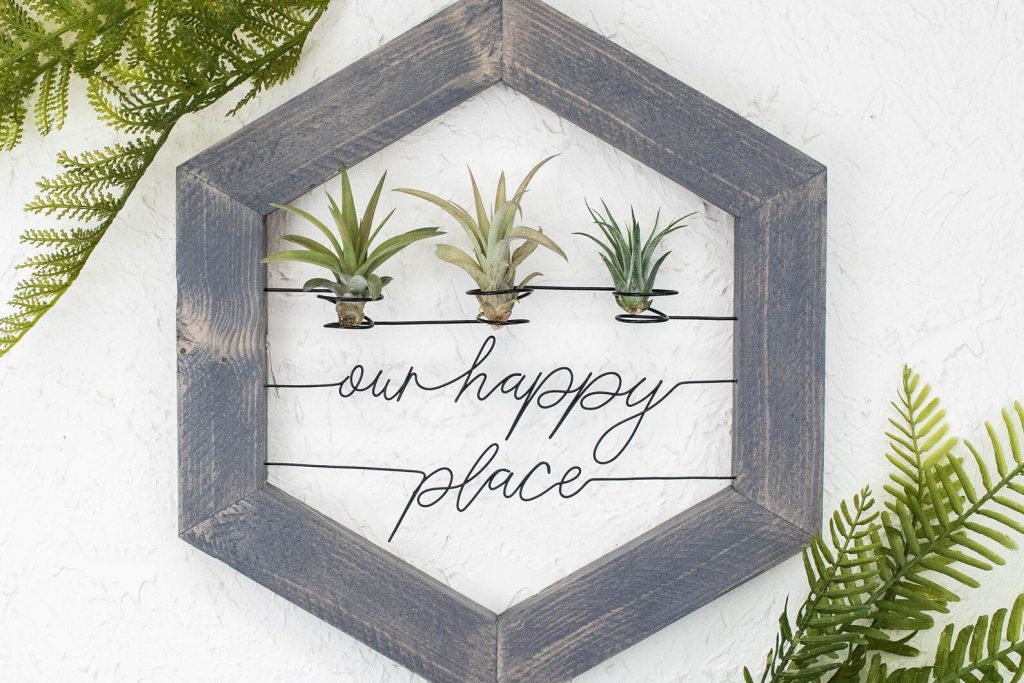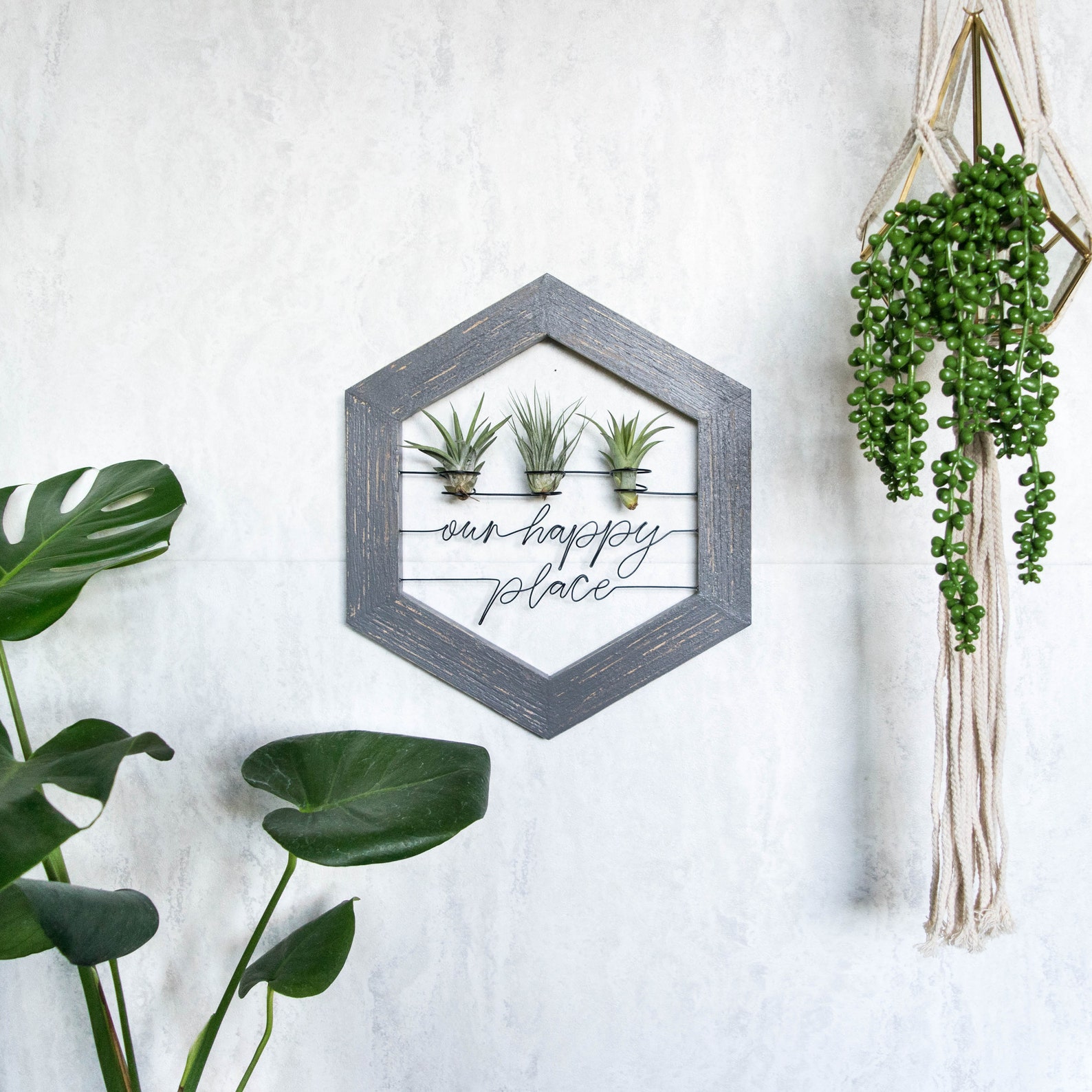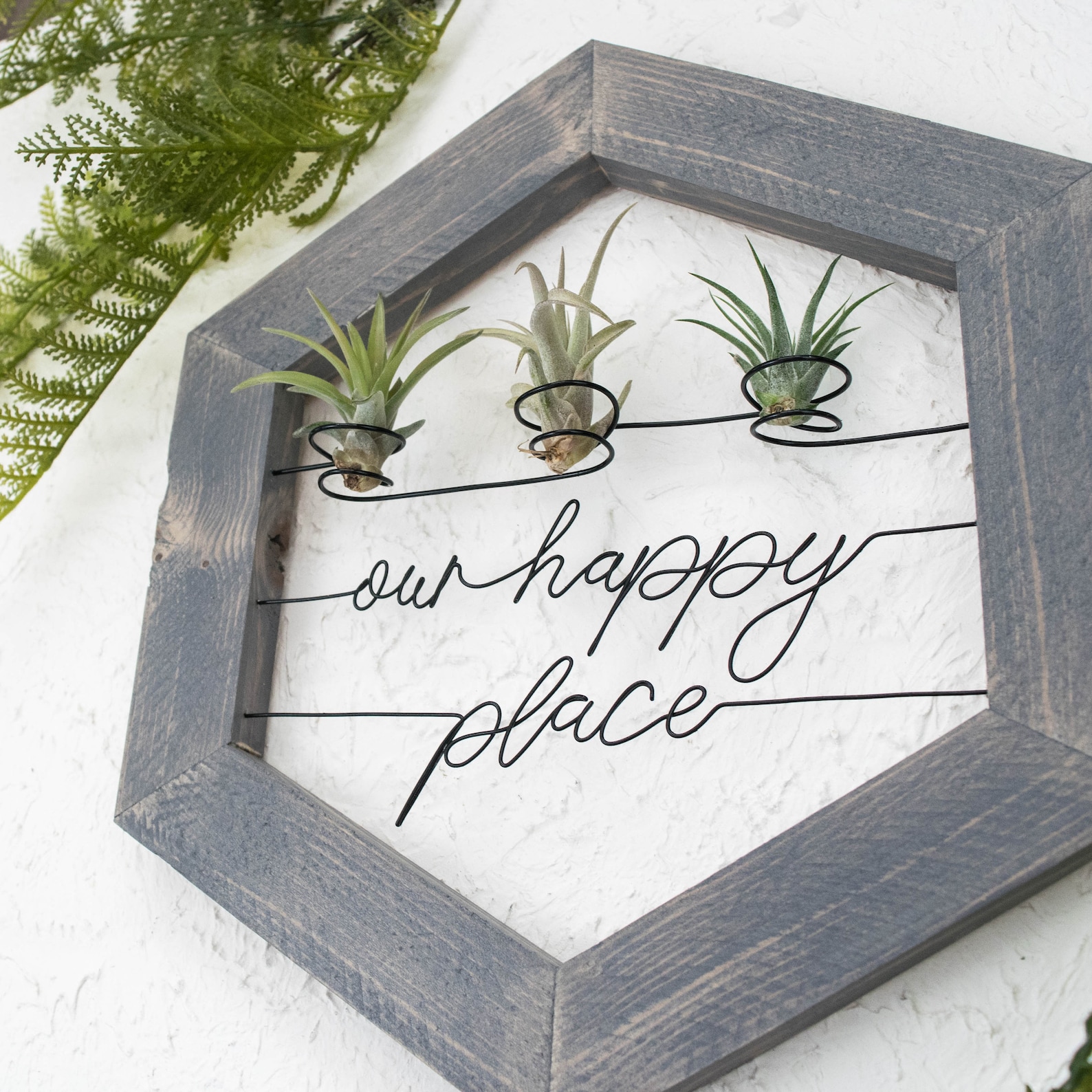 Happy Place Sign – Metal and Wood Wall Planter Decor