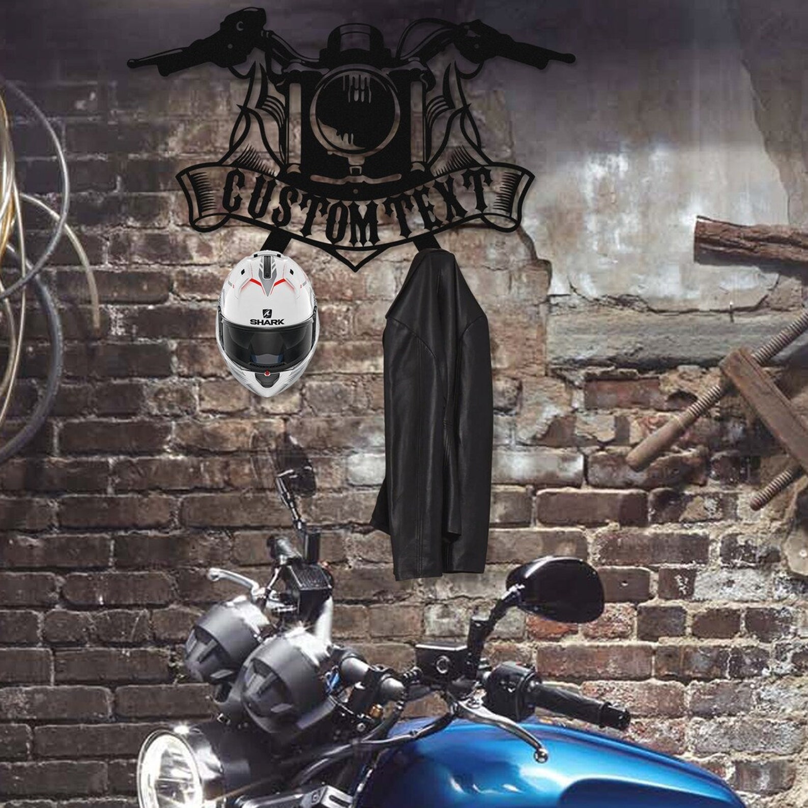 motorcycle helmet, motorcycle helmet holder, custom motorcycle helmet, harley davidson helmet holder, harley davidson, cafe racer, harley davidson helmet hanger, porte casque moto