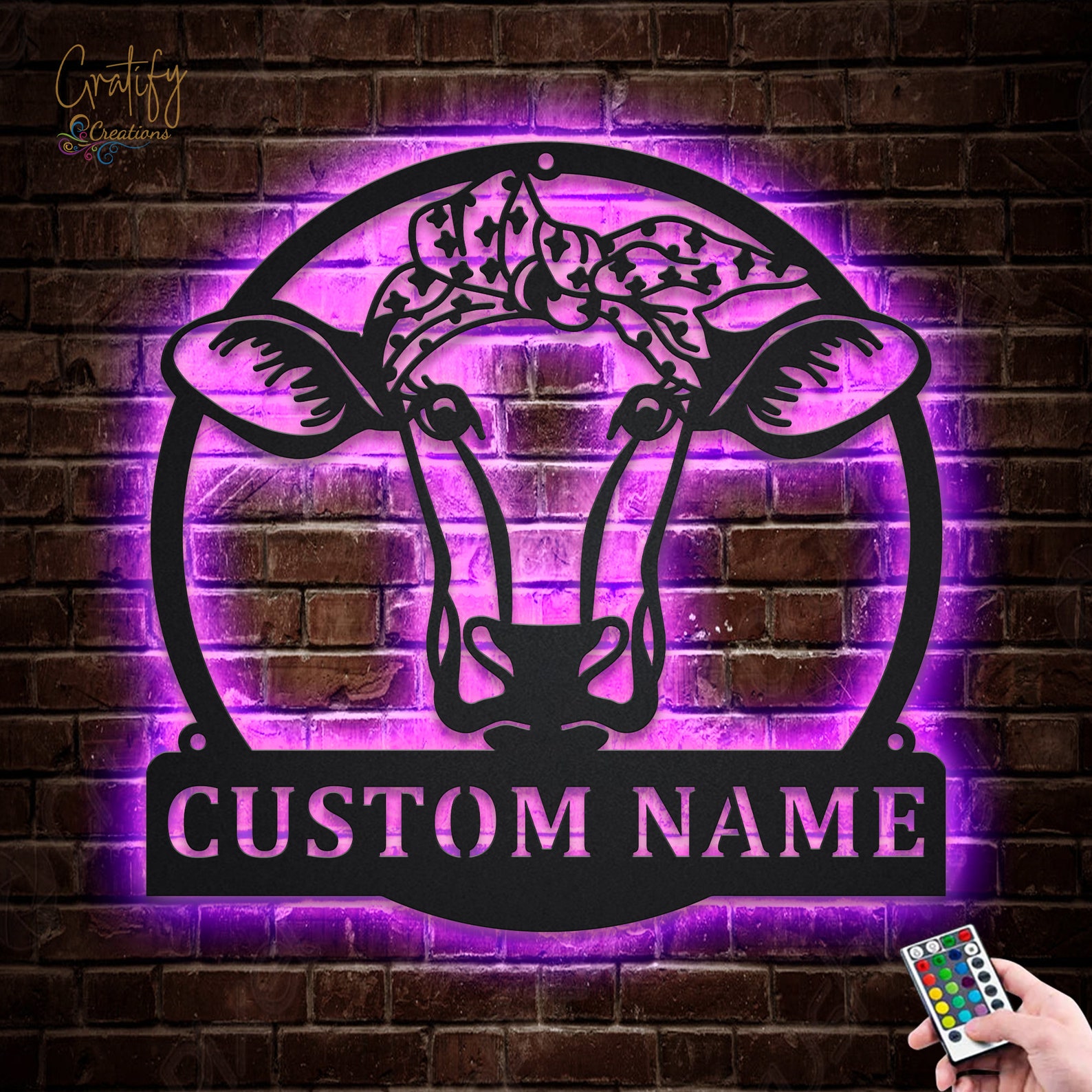 Be the first to review “Heifer Cow Metal Sign with LED – Farmhouse Decor”