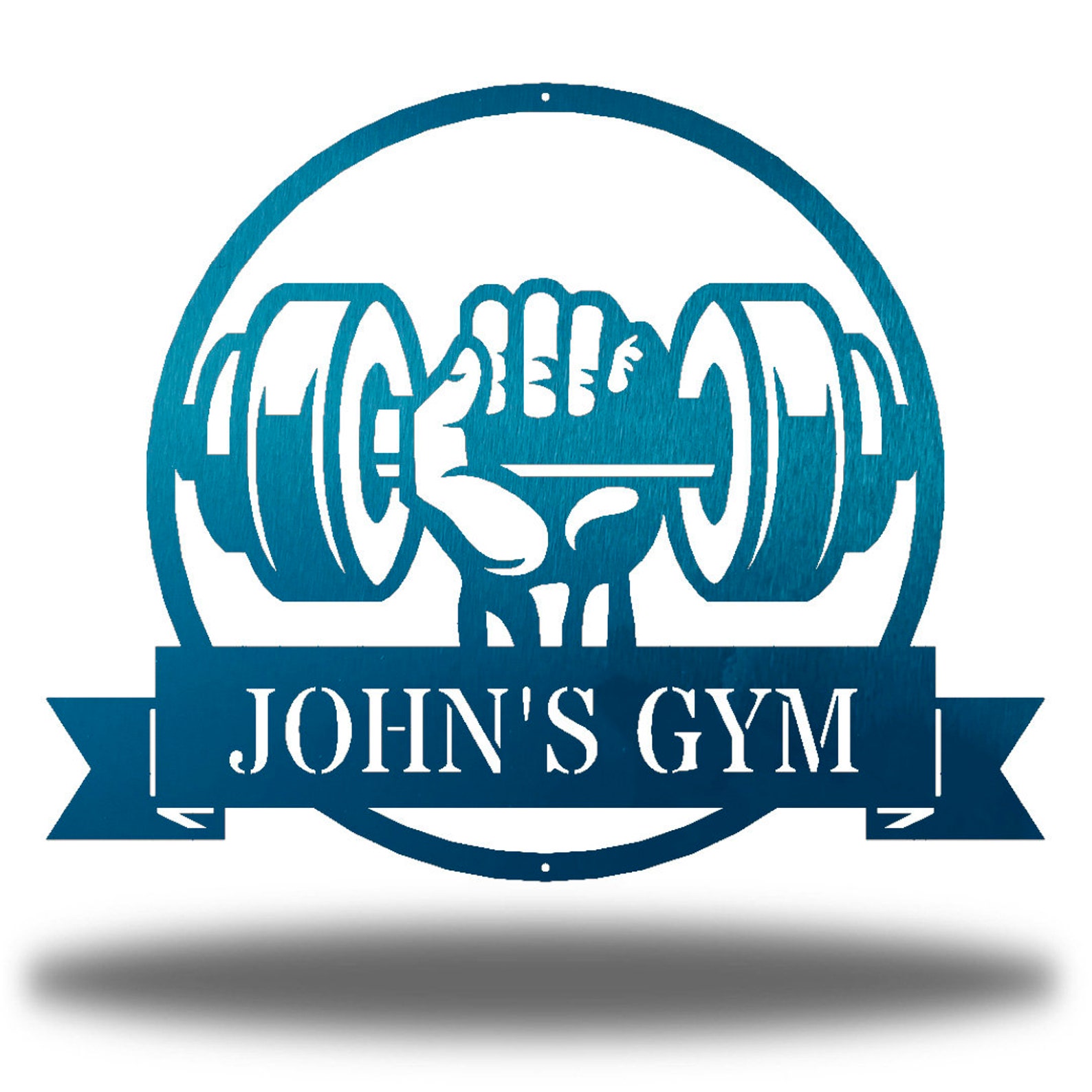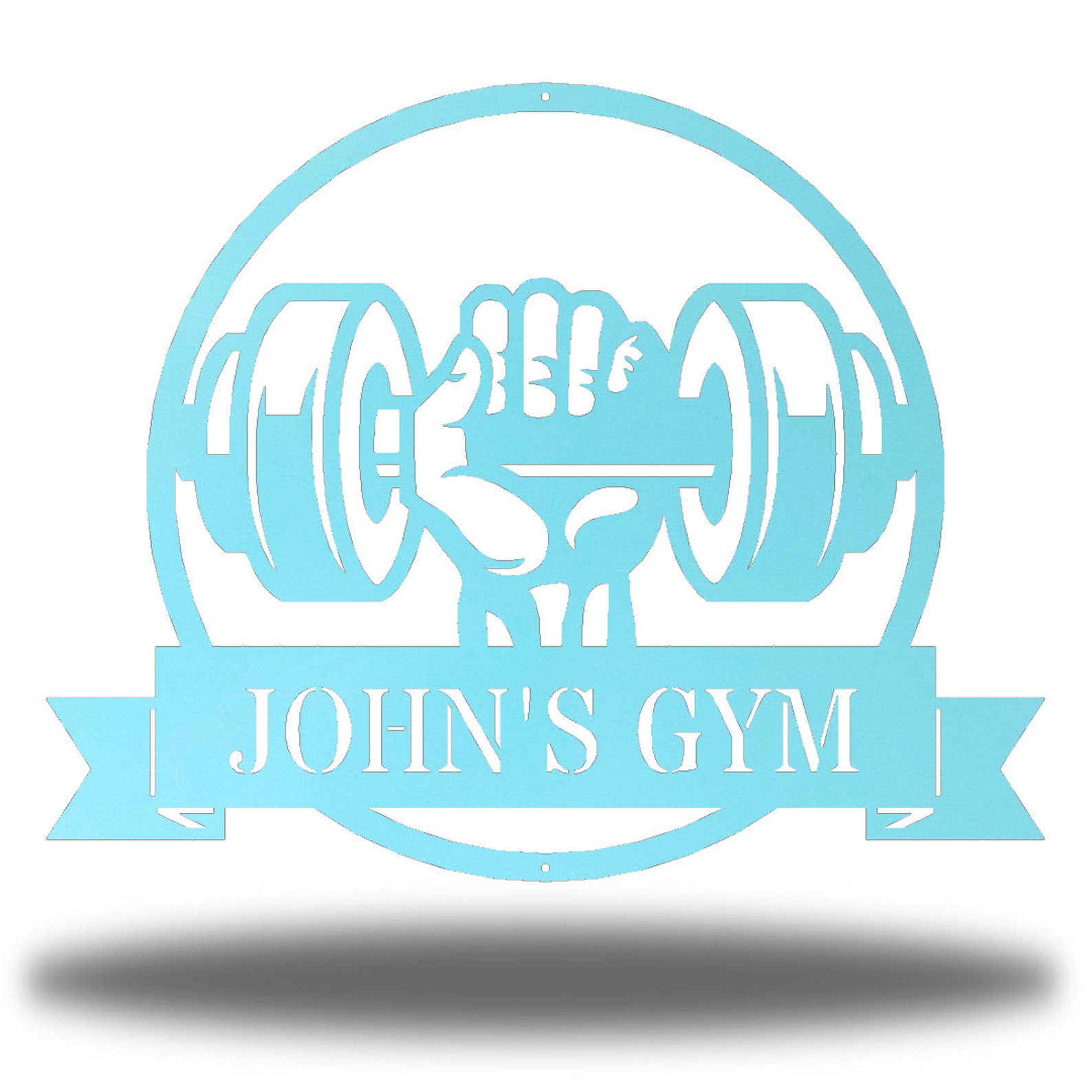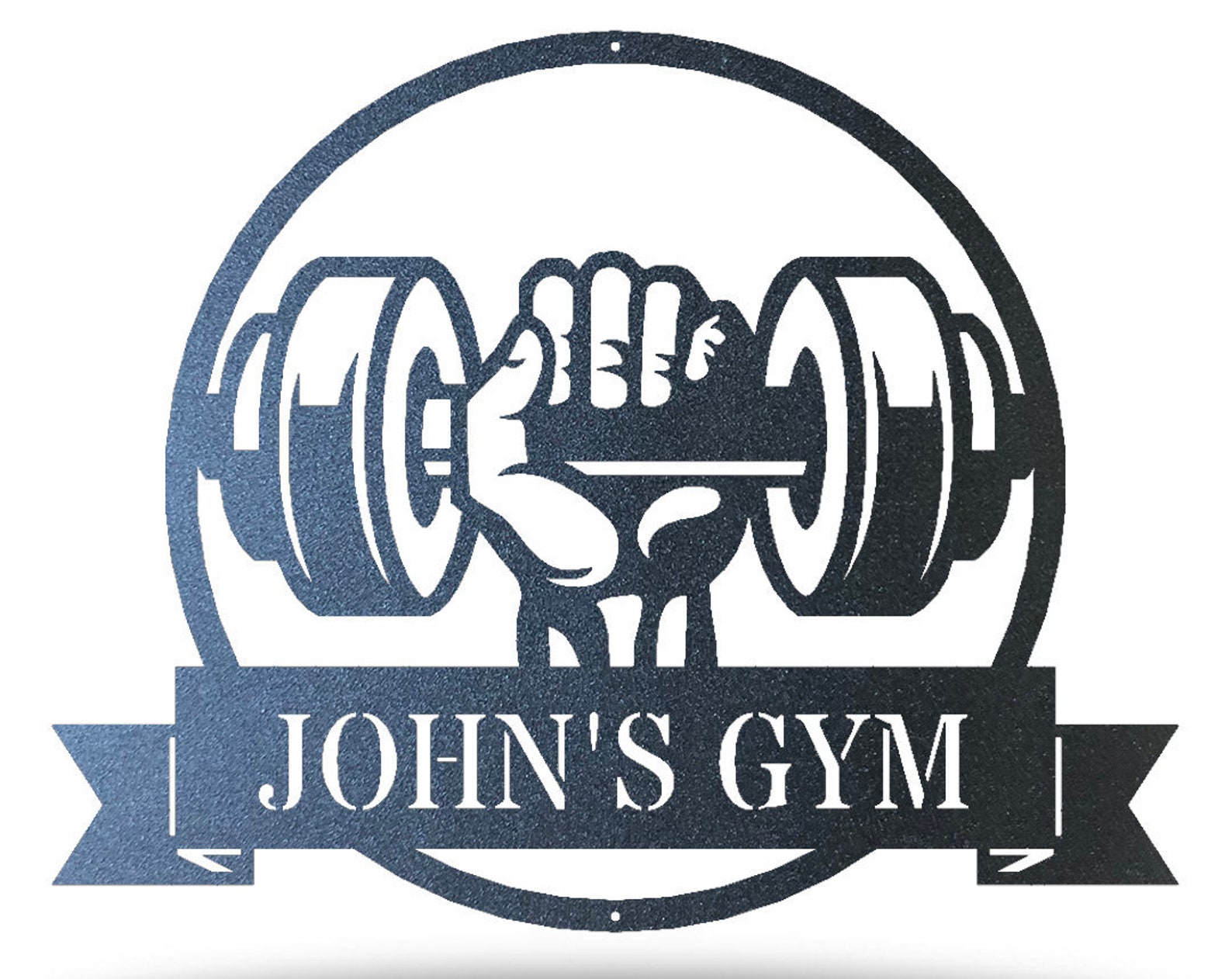 This Dumbbell Monogram Metal Wall Art is constructed of 18 gauge steel on a Fiber Laser and then Powder Coated to give this item a one of a kind, unique finish.