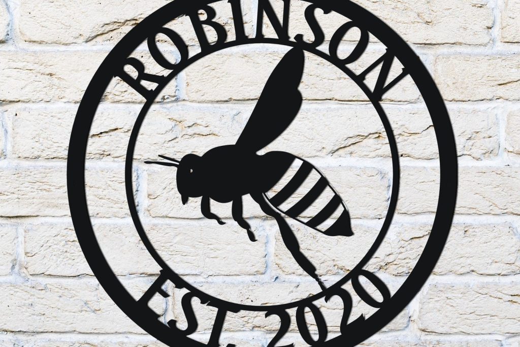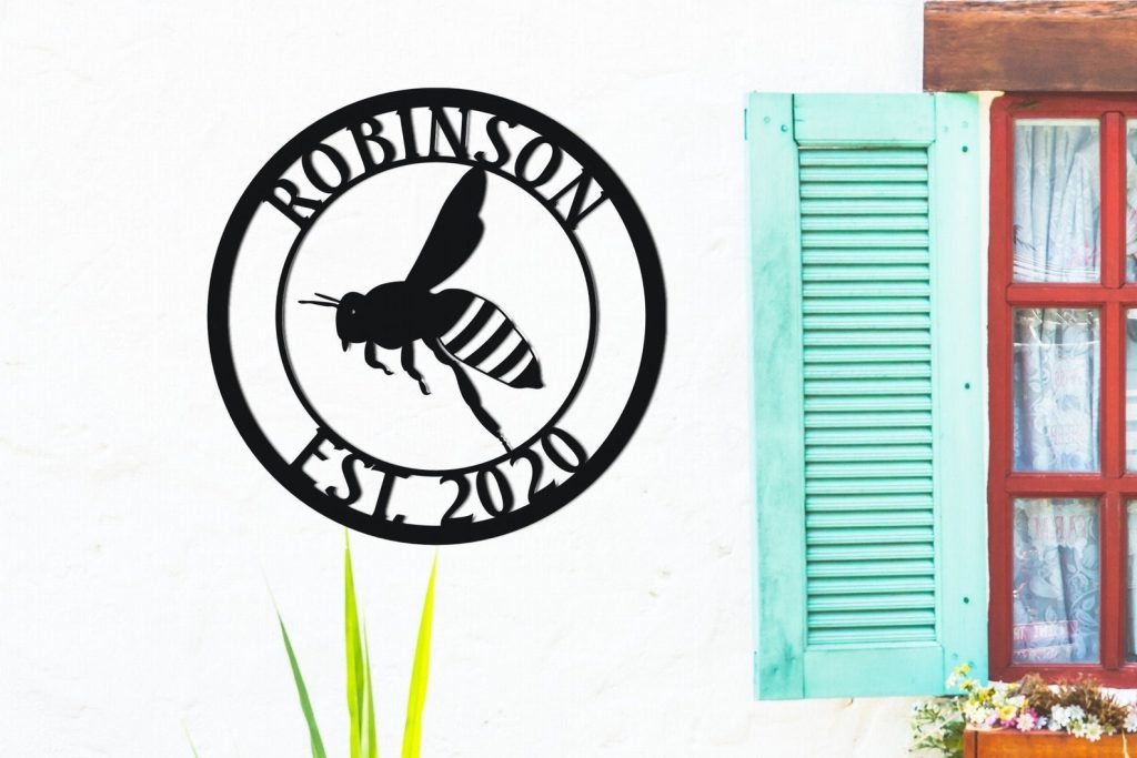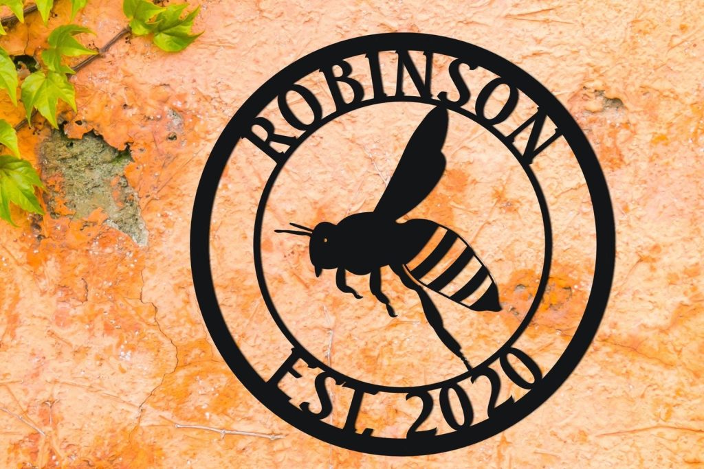 Be the first to review “Honey Bee Sign – Personal Metal Family Name, Bee Farm Decor”