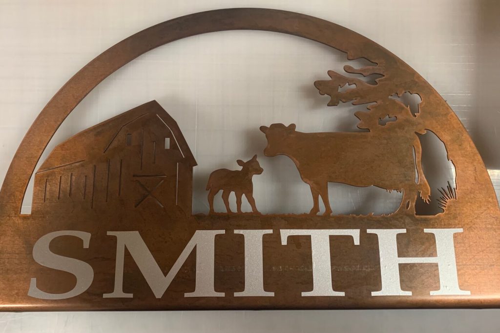 Name is vinyl lettering so can be seen on both sides or optional cut out letters if only one side is needed.